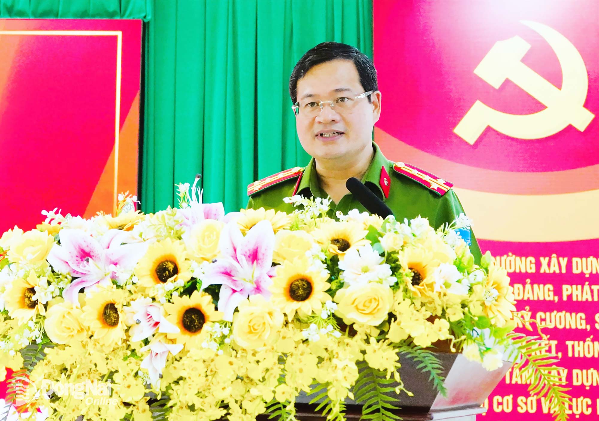 | Đại tá Trần Anh Sơn, Phó Giám đốc Công an tỉnh Đồng Nai phát biểu chỉ đạo tại hội nghị. Ảnh: Hoàng Lan |