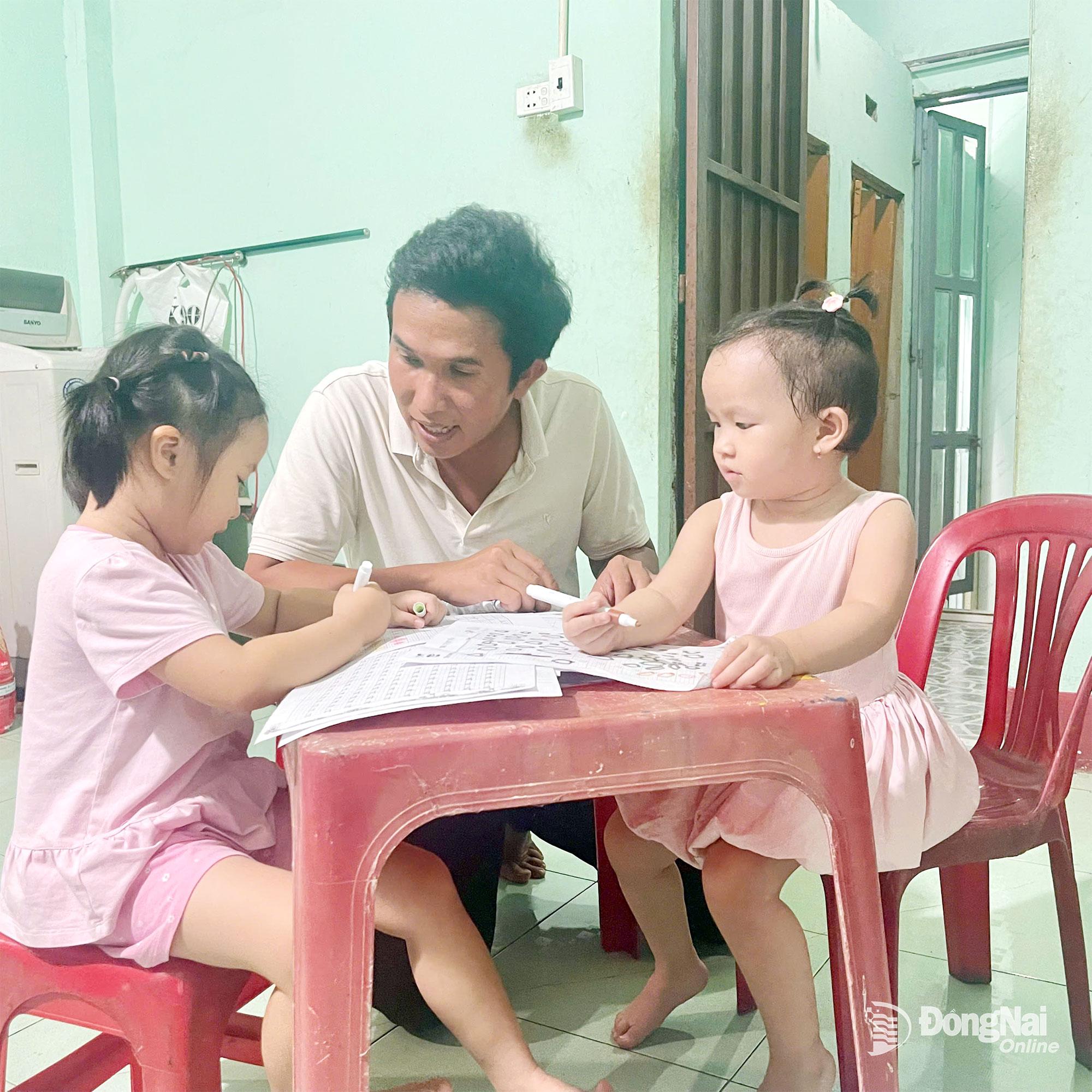 | Trong ngôi nhà thiếu vắng bàn tay phụ nữ, mỗi sáng sớm hay chiều muộn, một mình anh Đạt đảm trách cả việc lo cho con gái và em gái. Ảnh: Thu Hiền |