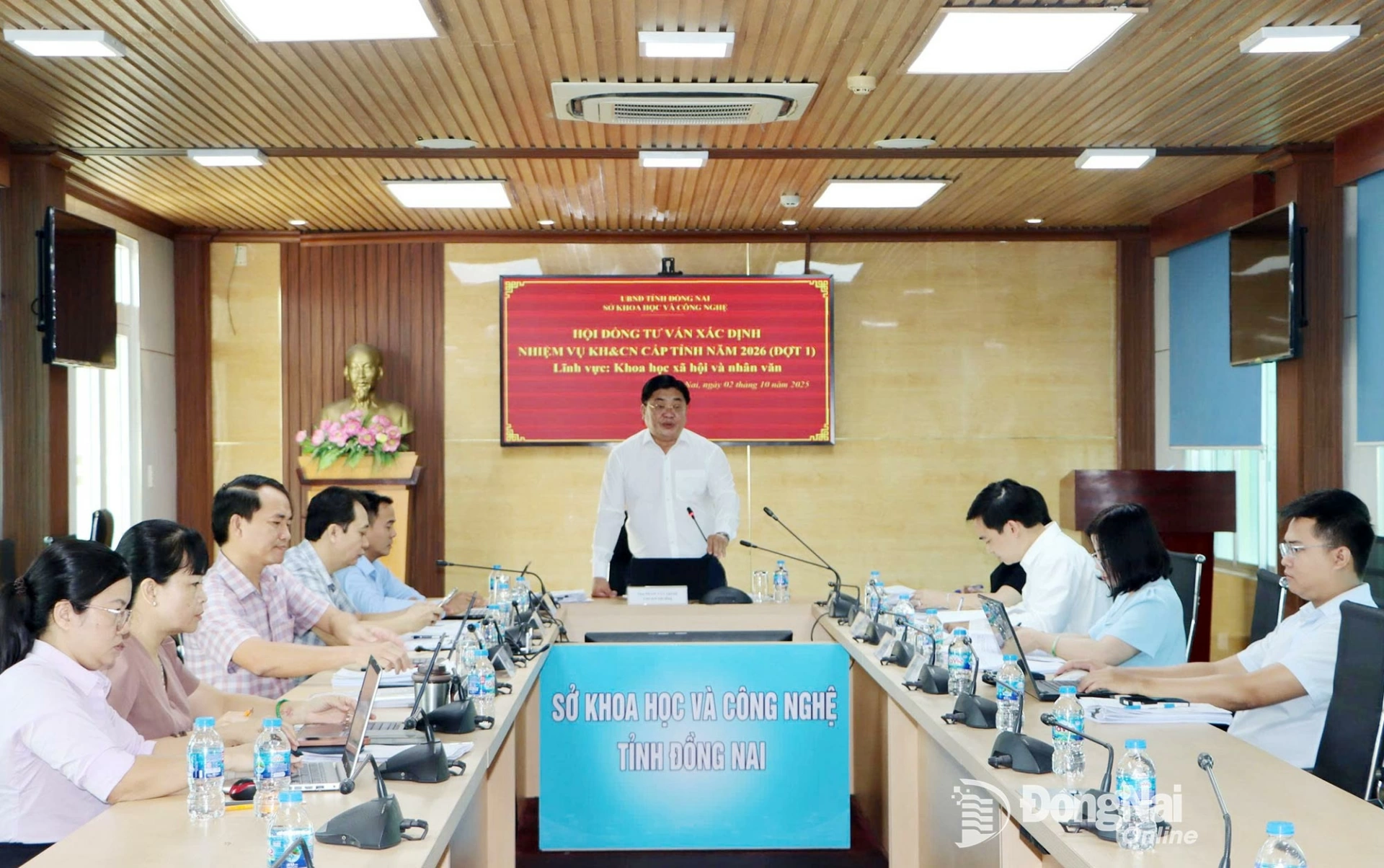 (ĐN) - Ngày 2-10, Sở Khoa học và Công nghệ tỉnh Đồng Nai tổ chức Hội đồng Khoa học tư vấn xác định danh mục nhiệm vụ khoa học và công nghệ cấp tỉnh năm 2026 (đợt 1). Tỉnh ủy viên, Giám đốc Sở Khoa học và Công nghệ tỉnh Đồng Nai Phạm Văn Trinh, Chủ tịch Hội đồng chủ trì buổi làm việc.