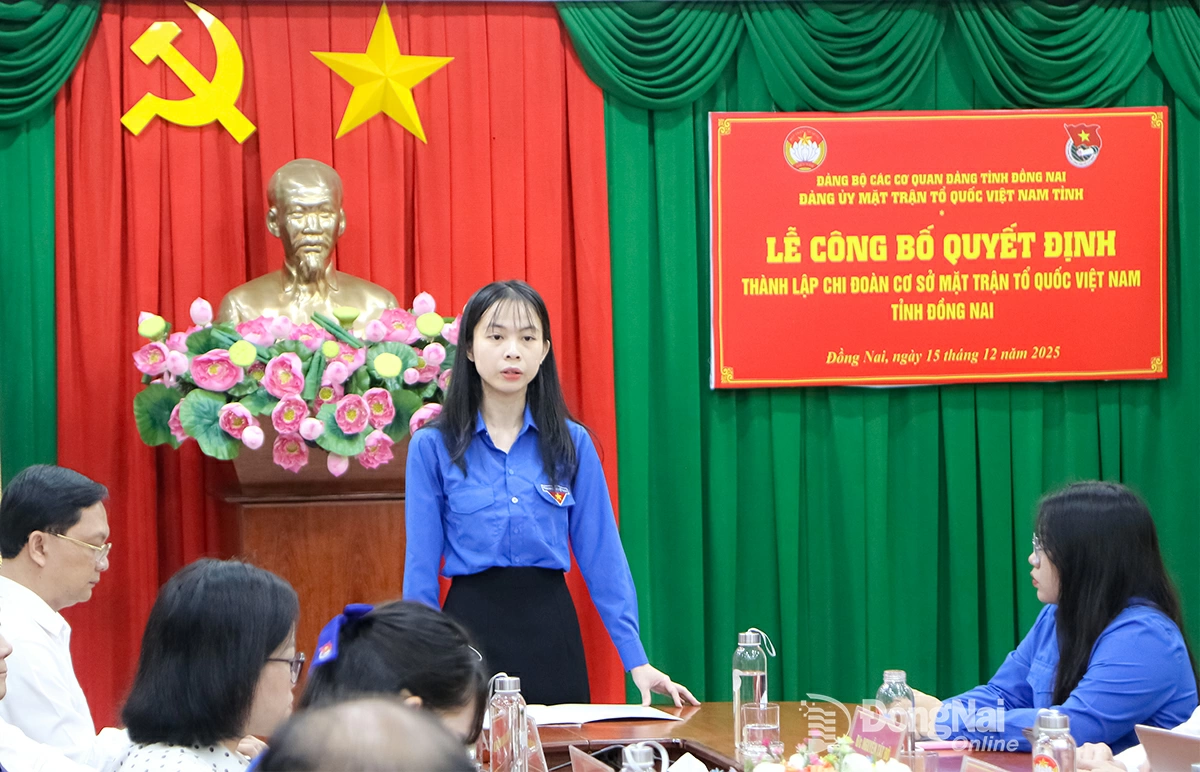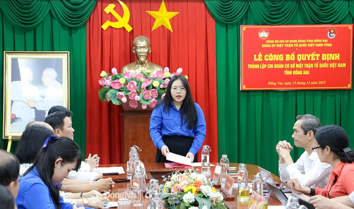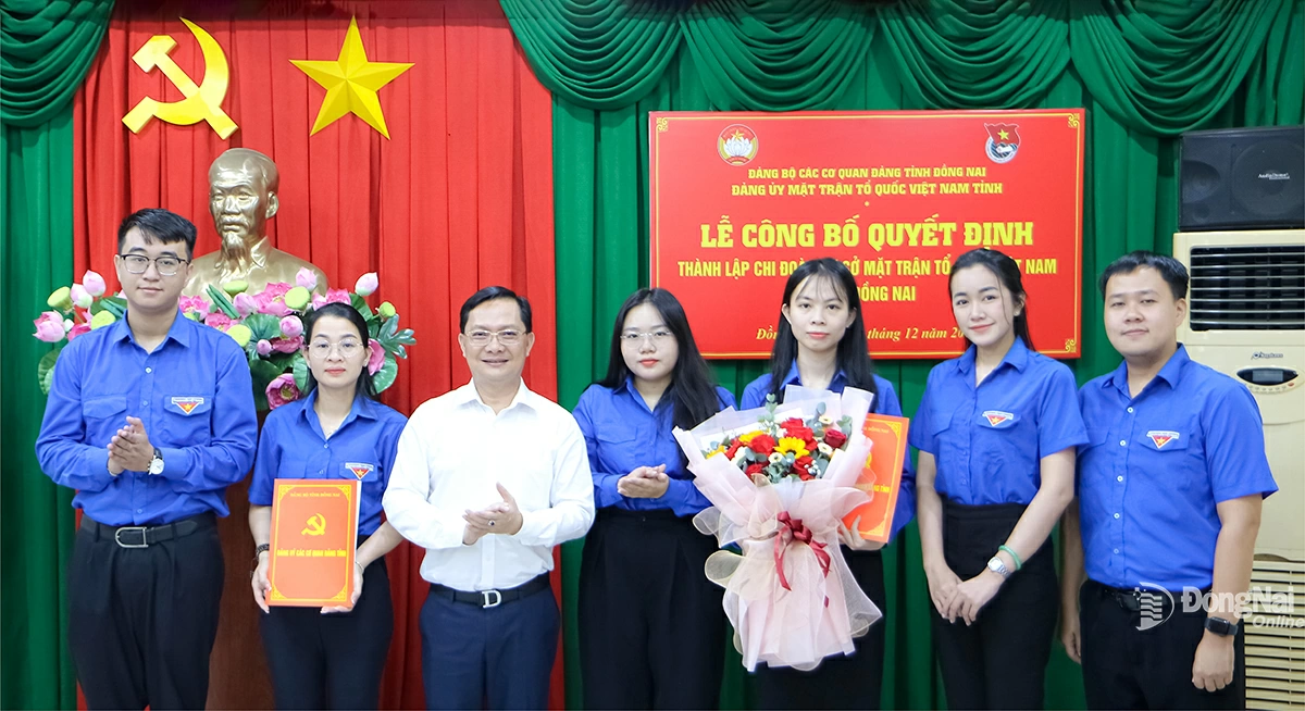 Tại buổi lễ, Bí thư Đoàn các cơ quan Đảng tỉnh Nguyễn Tuyết Nhung đã trao quyết định thành lập Chi đoàn cơ sở MTTQ Việt Nam tỉnh Đồng Nai.