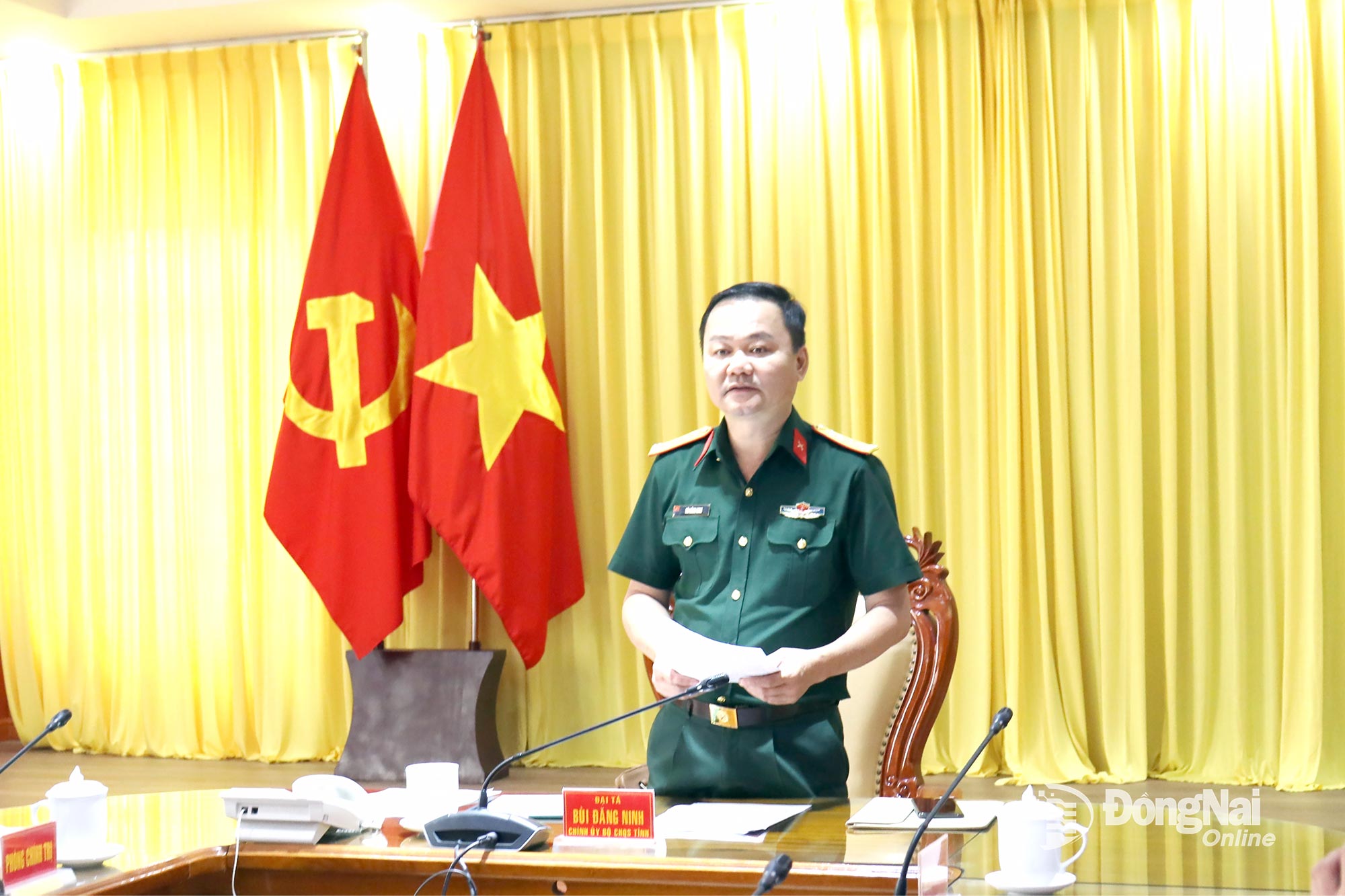 | Đại tá Bùi Đăng Ninh, Tỉnh ủy viên, Phó Bí thư Thường trực Đảng ủy Quân sự tỉnh, Chính ủy Bộ Chỉ huy Quân sự tỉnh Đồng Nai phát biểu kết luận hội nghị. Ảnh: Nguyệt Hà |