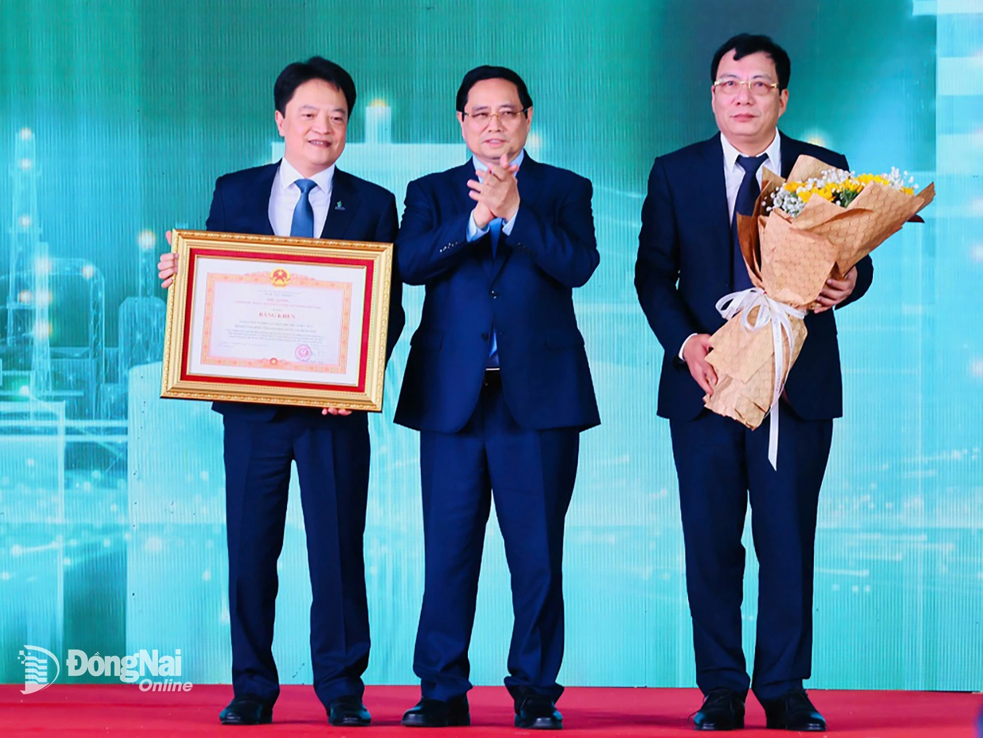 | Thủ tướng Chính phủ Phạm Minh Chính trao tặng bằng khen cho Tổng Công ty Điện lực dầu khí Việt Nam. Ảnh: Công Nghĩa |