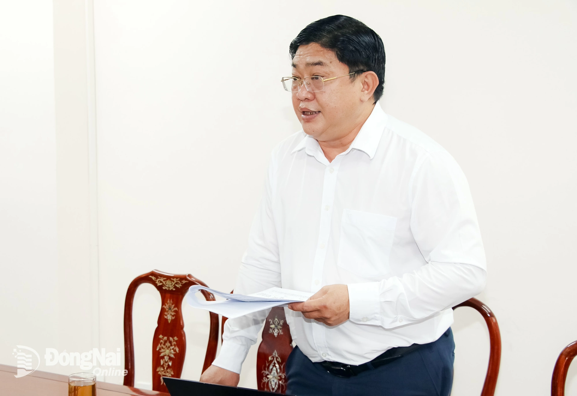 Ủy viên Ban Thường vụ Tỉnh ủy, Phó Chủ tịch UBND tỉnh Đồng Nai Lê Trường Sơn chủ trì buổi làm việc. Ảnh: Hải Quân