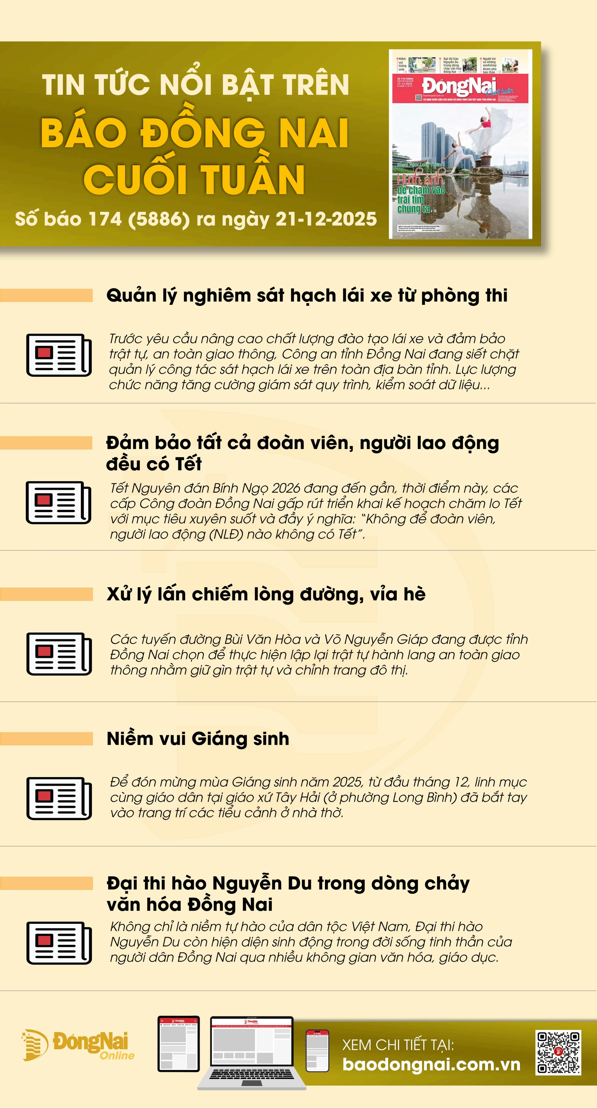 Chủ nhật, 21/12/2025 | 07:00 A- A A+ | Tin tức nổi bật trên Báo Đồng Nai cuối tuần ra ngày 21-12-2025 baodongnai.com.vn Bình luận Email* Ý kiến của bạn* Nhập lại Gửi Các tin khác Đổi mới hoạt động Đoàn, hội với workshop Người trẻ và những workshop khám phá bản thân Nuôi đặc sản gà trống thiến vụ Tết Xây dựng trường học hạnh phúc: Không đợi đủ mới làm Đảm bảo tất cả đoàn viên, người lao động đều có Tết Đảm bảo tất cả đoàn viên, người lao động đều có Tết