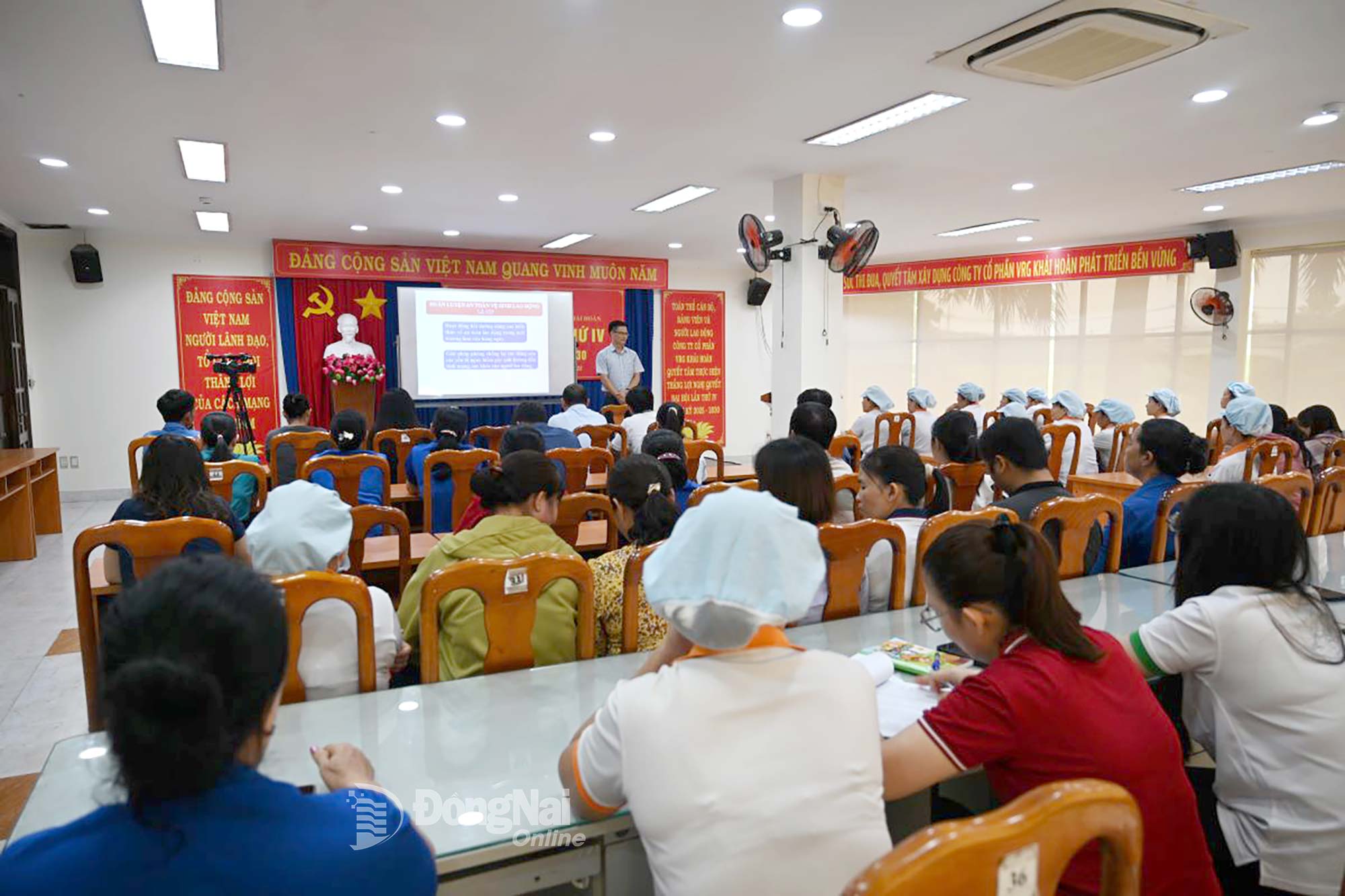 Lớp huấn luyện về an toàn, vệ sinh lao động được tổ chức trong 3 ngày từ 14 đến 16-8 cho toàn bộ 360 công nhân của công ty.