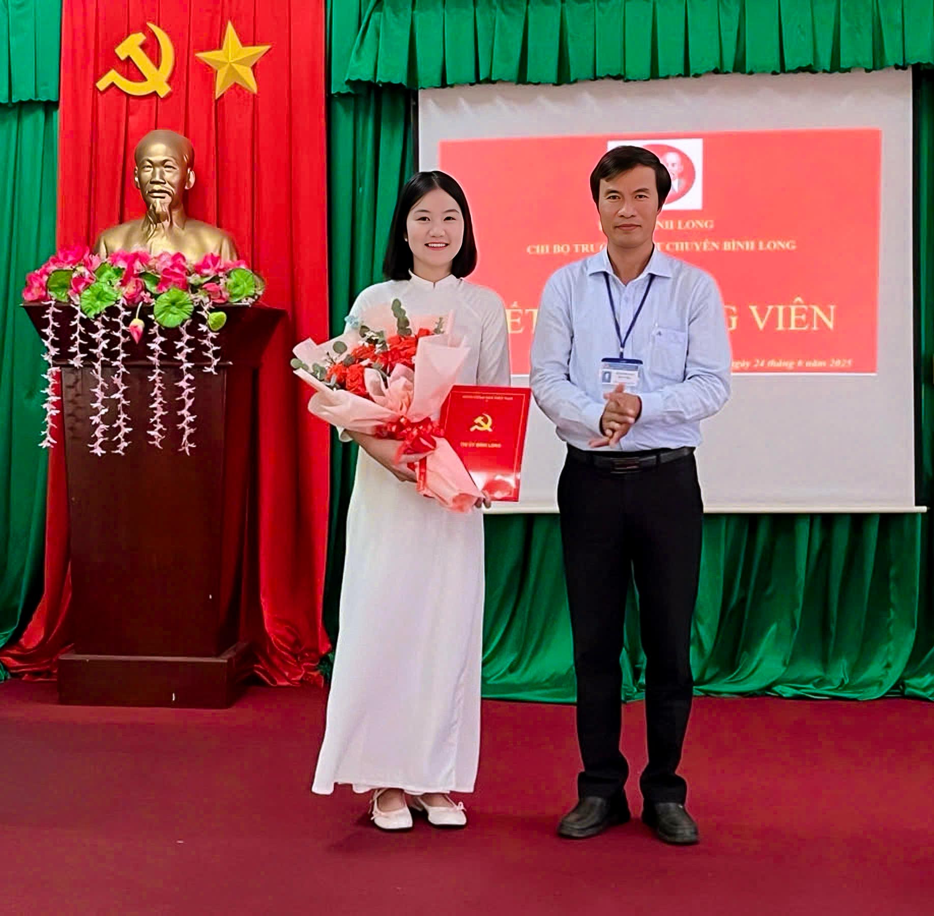 Với thành tích đạt học sinh giỏi từ nhiều năm liền và có nhiều đóng góp trong các hoạt động của lớp, của trường, học sinh Hoàng Trần Hải Băng đã vinh dự trở thành một “Đảng viên tuổi 18” của Trường THPT chuyên Bình Long. Hải Băng chia sẻ: “Ngay từ khi vào lớp 10, tôi đã xác định phải tập trung học để đạt kết quả cao nhất và tích cực tham gia phong trào của lớp, của trường với mong muốn không ngừng rèn luyện, học hỏi, hoàn thiện bản thân. Trong quá trình học tập, qua từng bài giảng, cách ứng xử và sự tận tụy của thầy cô, tôi cảm nhận sâu sắc tinh thần trách nhiệm và sự gương mẫu của thầy cô không chỉ truyền đạt kiến thức mà còn dìu dắt học sinh về đạo đức và lối sống. Chính hình ảnh ấy đã thôi thúc tôi không ngừng rèn luyện, phấn đấu để trở thành một đảng viên ưu tú, sống và làm việc có ích cho xã hội”.