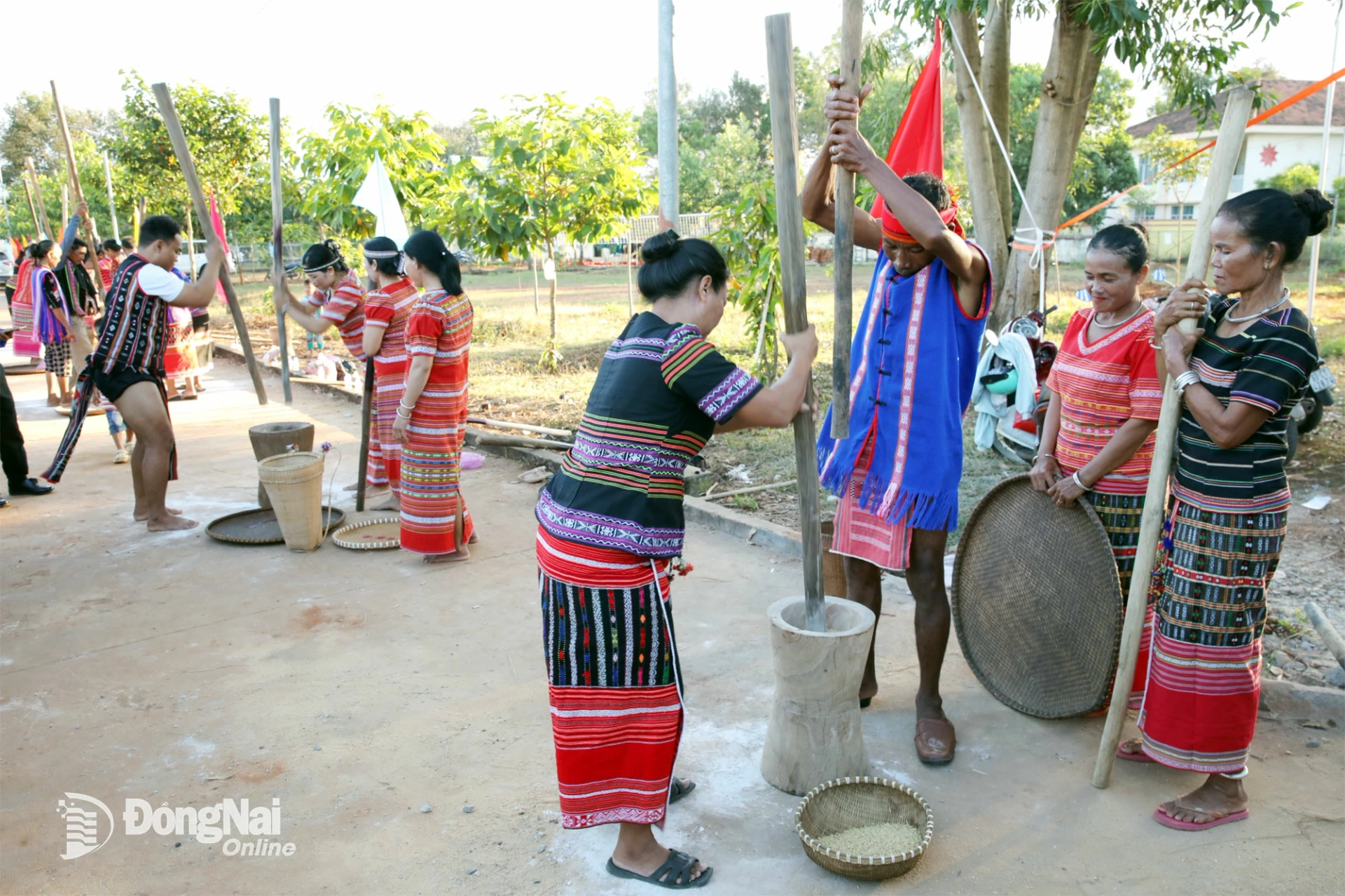 Ngay từ buổi chiều, âm thanh rộn rã của hội thi giã gạo đã khuấy động không gian lễ hội, mở màn cho một ngày hội lớn của đồng bào S’tiêng. Các đội thi từ nhiều ấp tham gia tranh tài, tái hiện những thao tác lao động quen thuộc gắn liền với đời sống thường nhật.