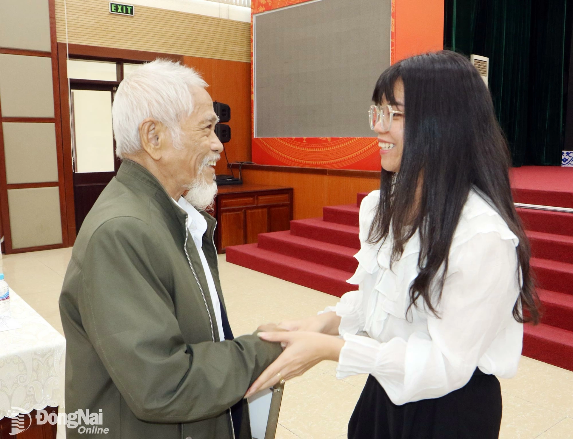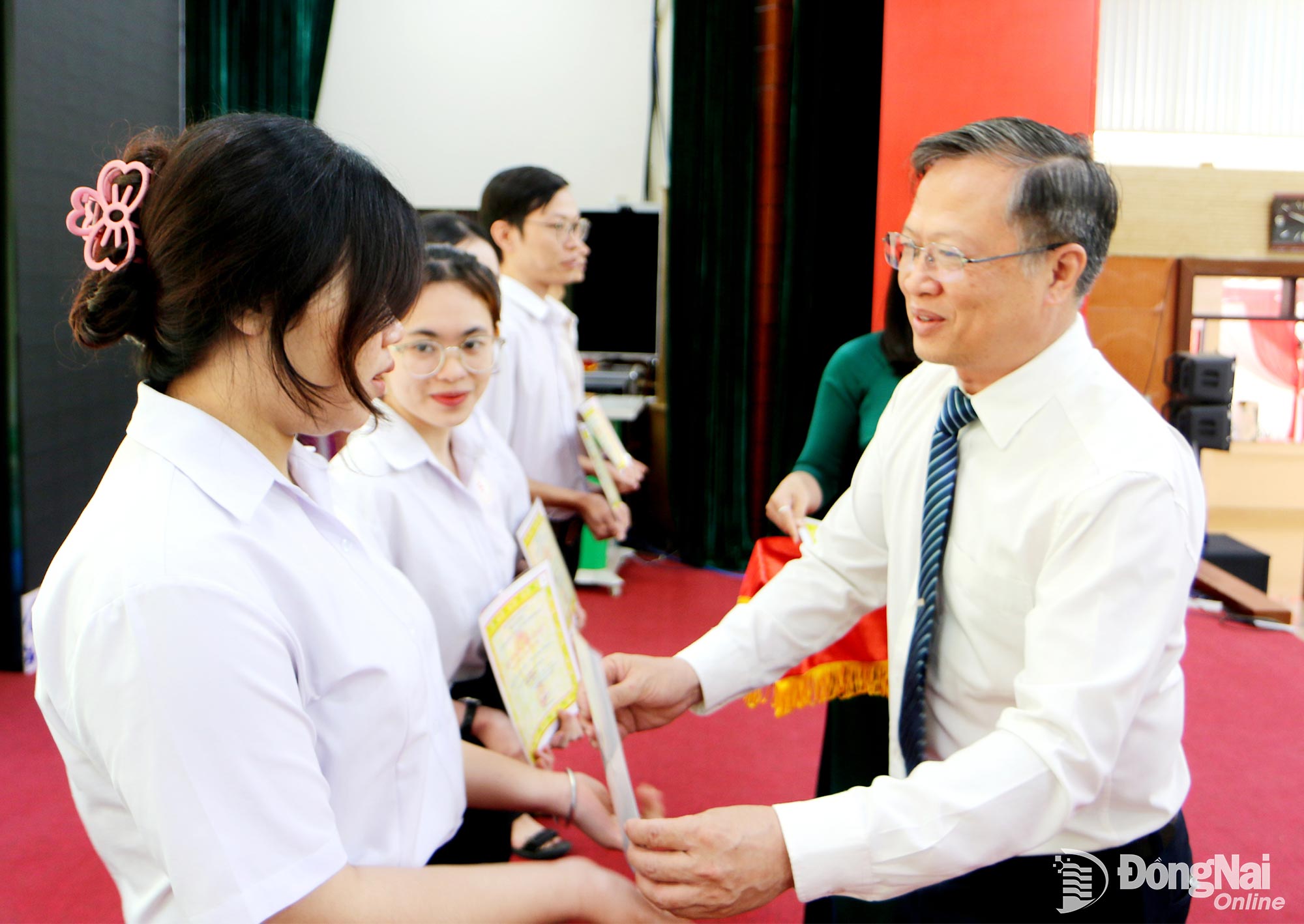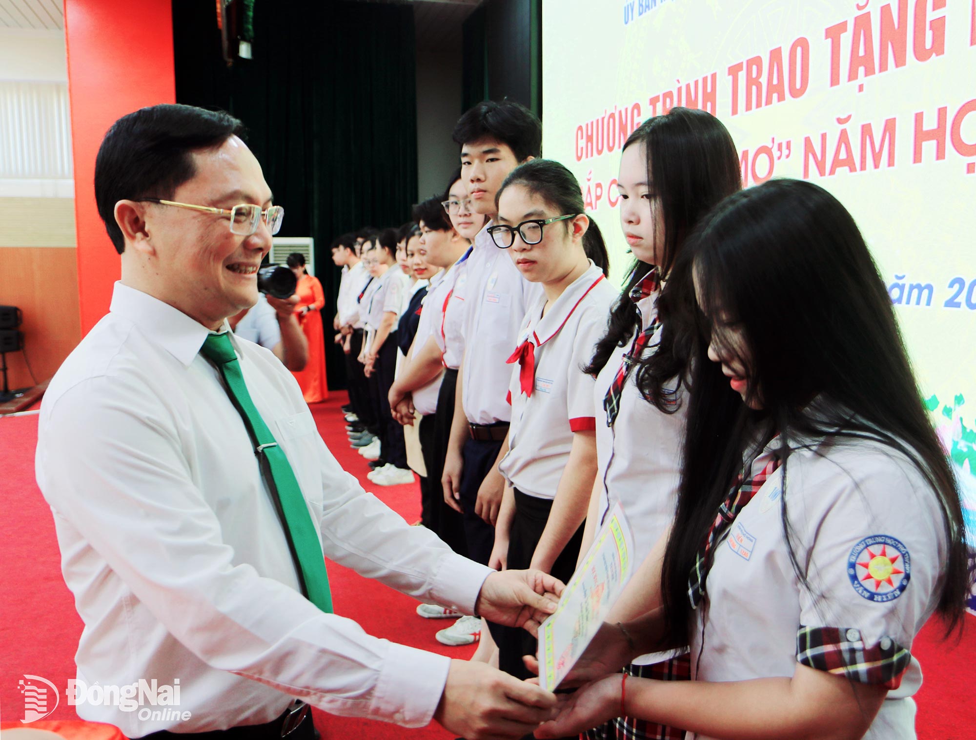 | Đồng chí Hà Anh Dũng, Ủy viên Ban Thường vụ Tỉnh ủy, Phó Chủ tịch Thường trực Ủy ban MTTQ Việt Nam tỉnh Đồng Nai trao học bổng cho học sinh, sinh viên. Ảnh: Văn Truyên |