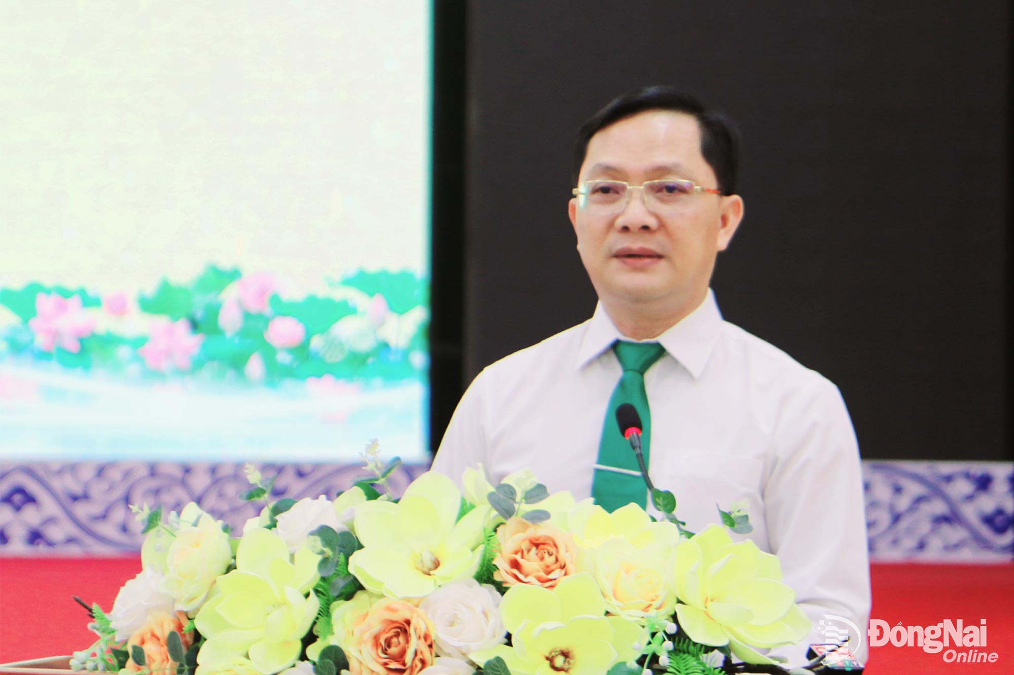 | Đồng chí Hà Anh Dũng, Ủy viên Ban Thường vụ Tỉnh ủy, Phó Chủ tịch Thường trực Ủy ban MTTQ Việt Nam tỉnh Đồng Nai phát biểu tại chương trình trao học bổng. Ảnh: Văn Truyên |