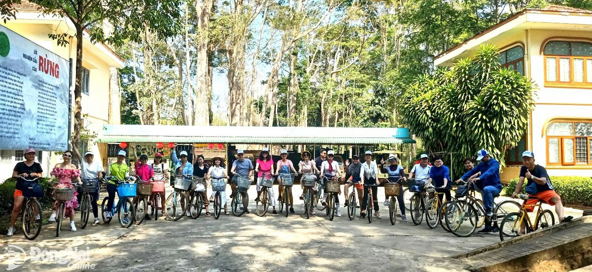 | Du khách đạp xe khám phá rừng xanh tại Vườn quốc gia Cát Tiên. Ảnh: Ngọc Liên |