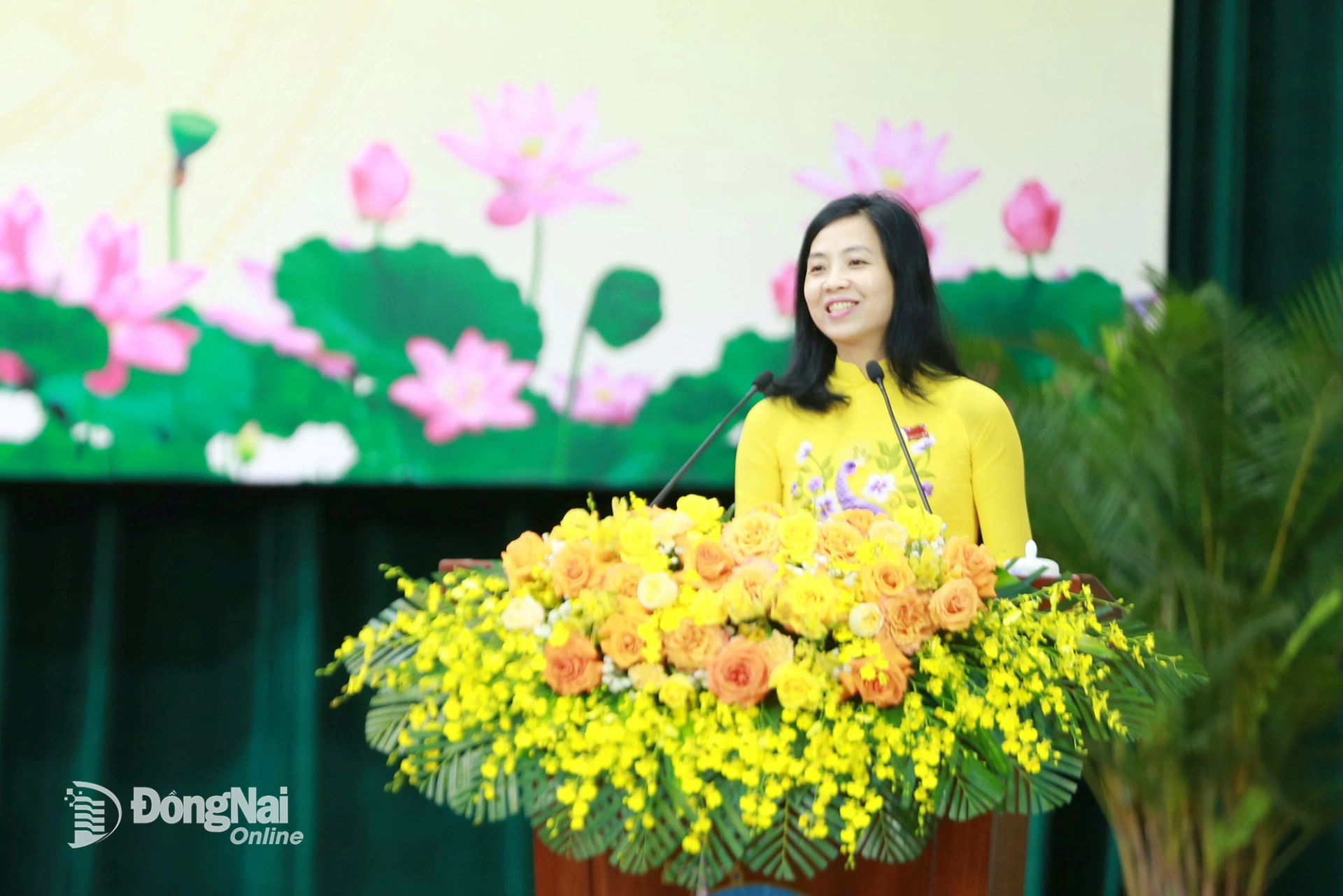 | Trưởng ban Văn hóa - Xã hội HĐND tỉnh Đồng Nai Huỳnh Ngọc Kim Mai phát biểu tham luận tại hội nghị. Ảnh: Huy Anh |