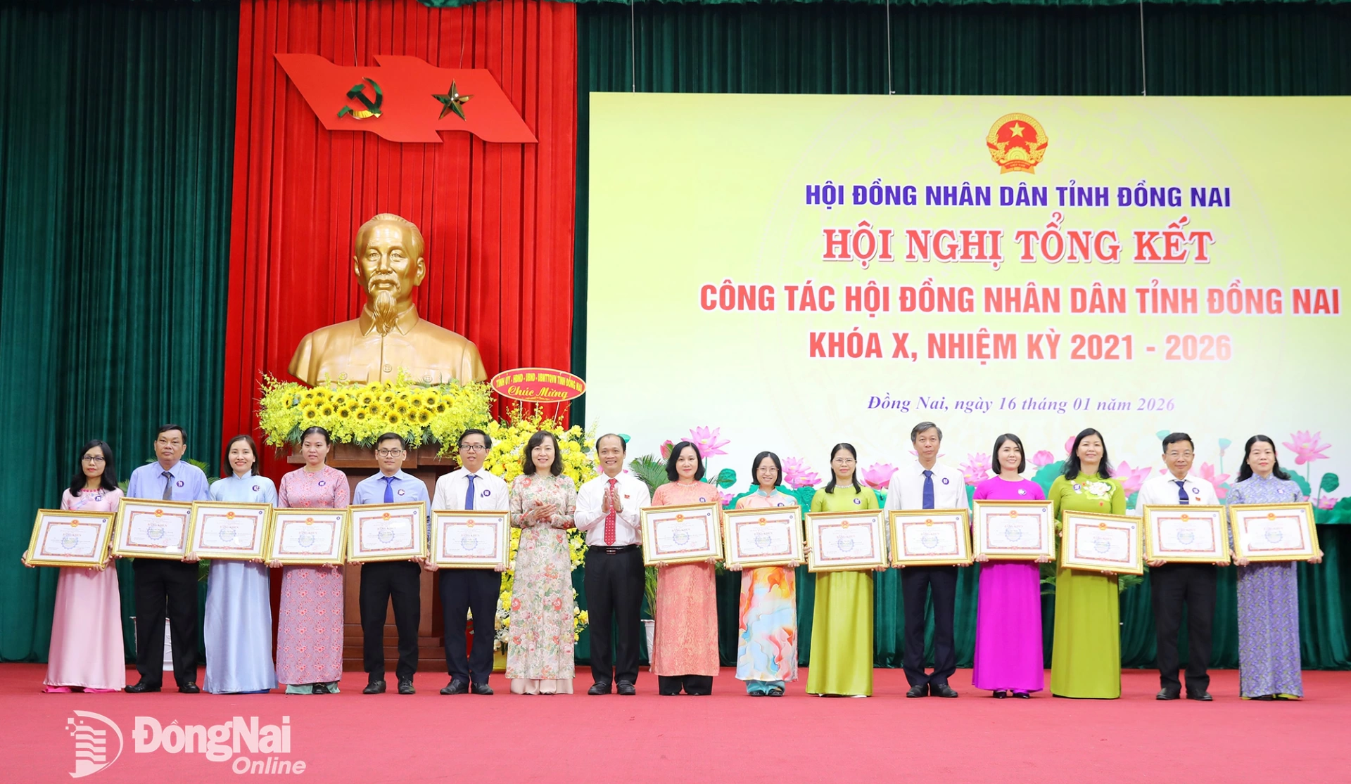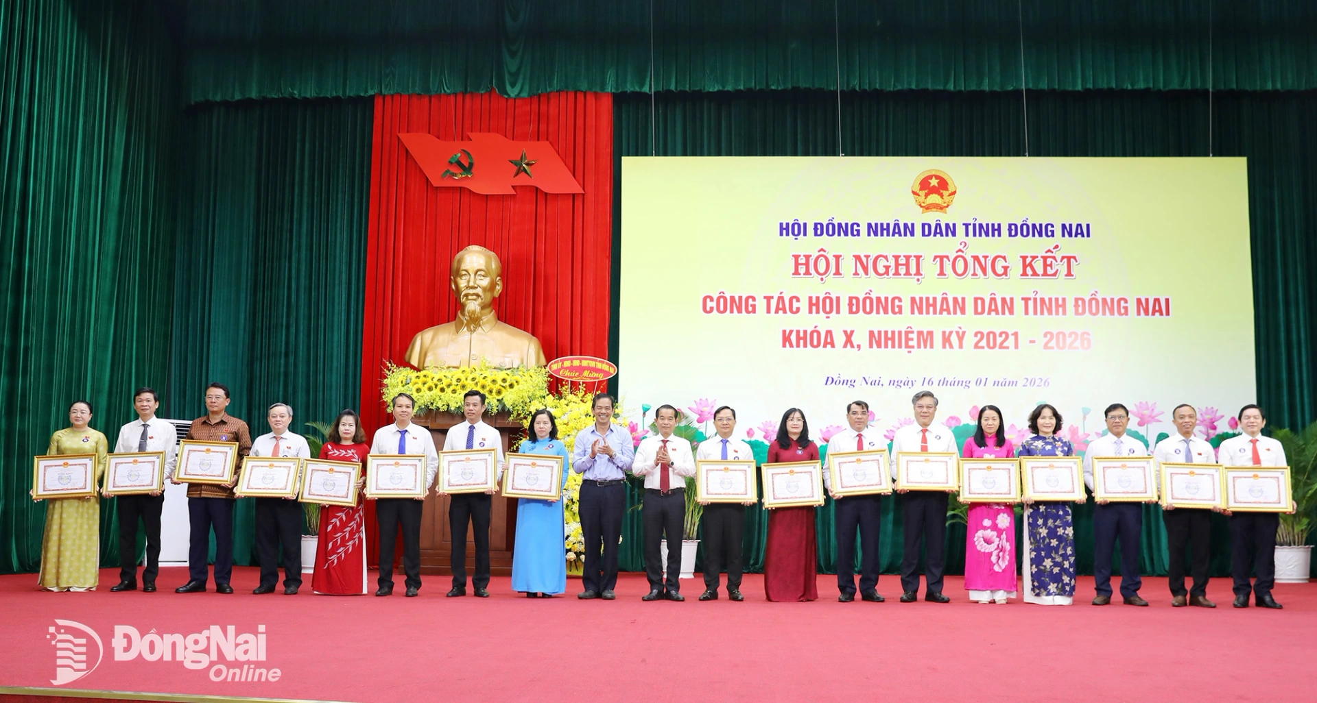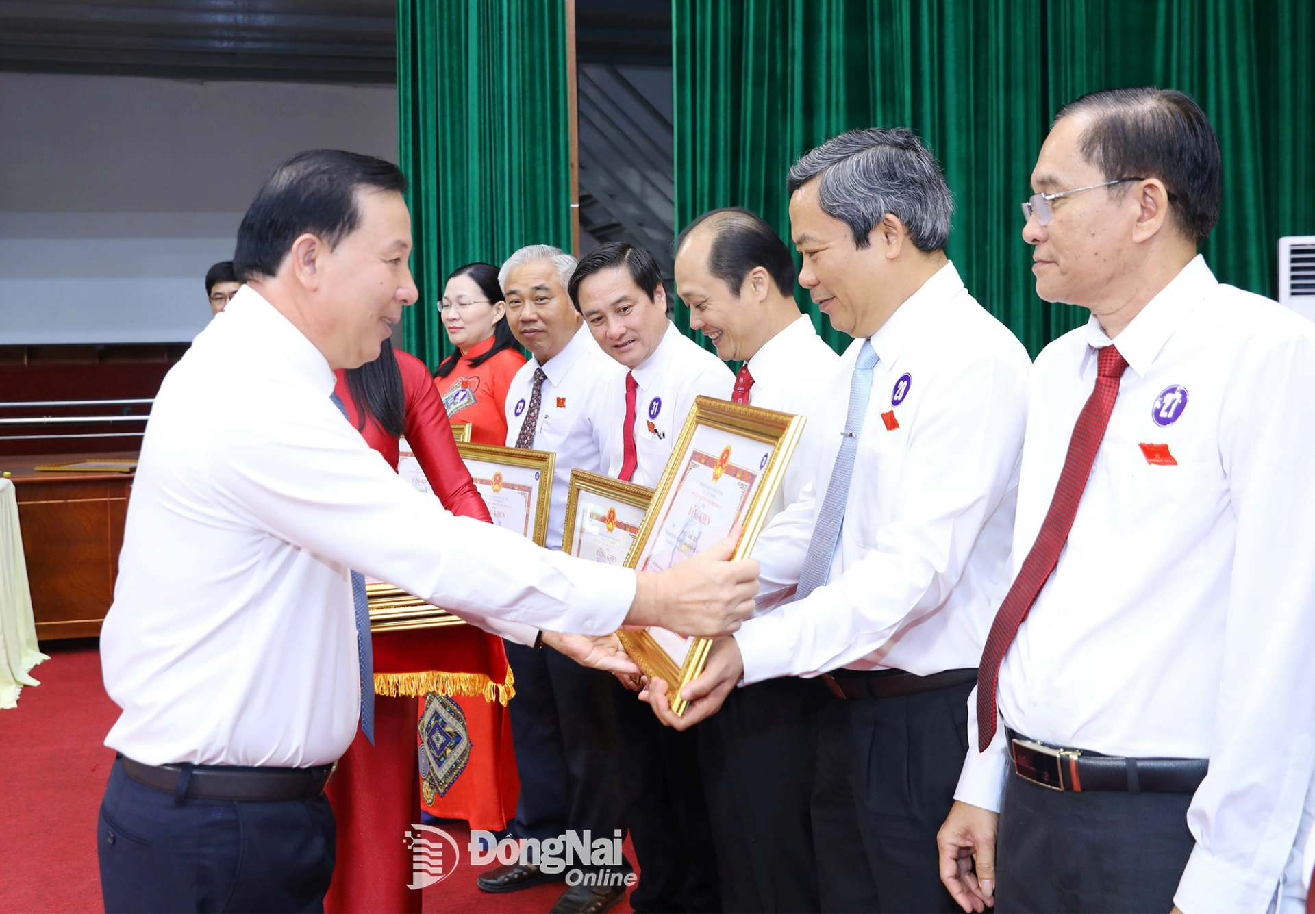 | Đồng chí Nguyễn Văn Út, Phó Bí thư Tỉnh ủy, Chủ tịch UBND tỉnh Đồng Nai trao bằng khen cho các tập thể, cá nhân có thành tích xuất sắc trong công tác hoạt động HĐND nhiệm kỳ 2021-2026. Ảnh: Huy Anh |