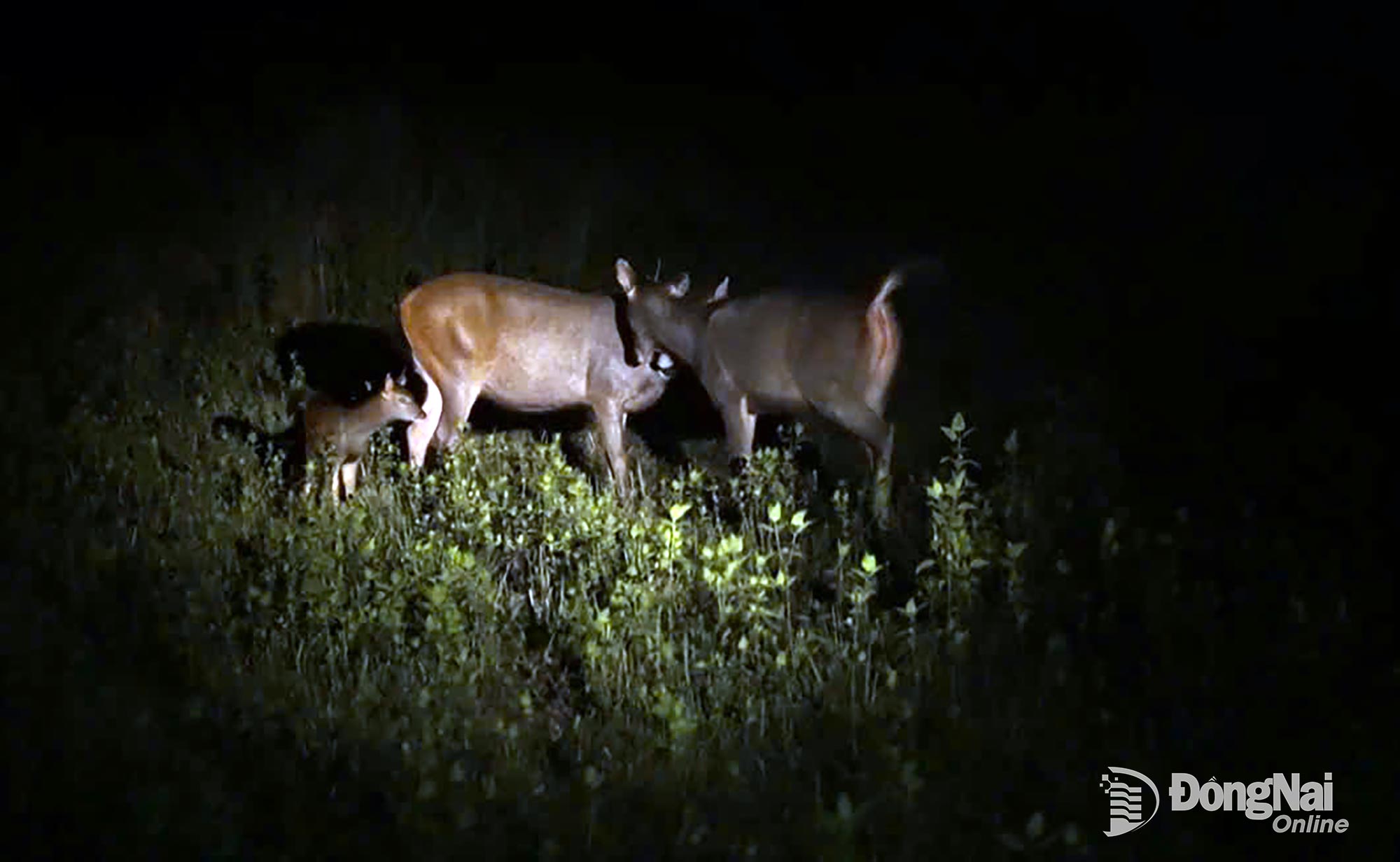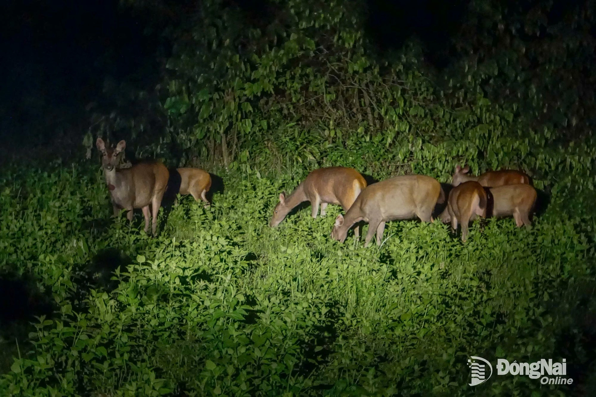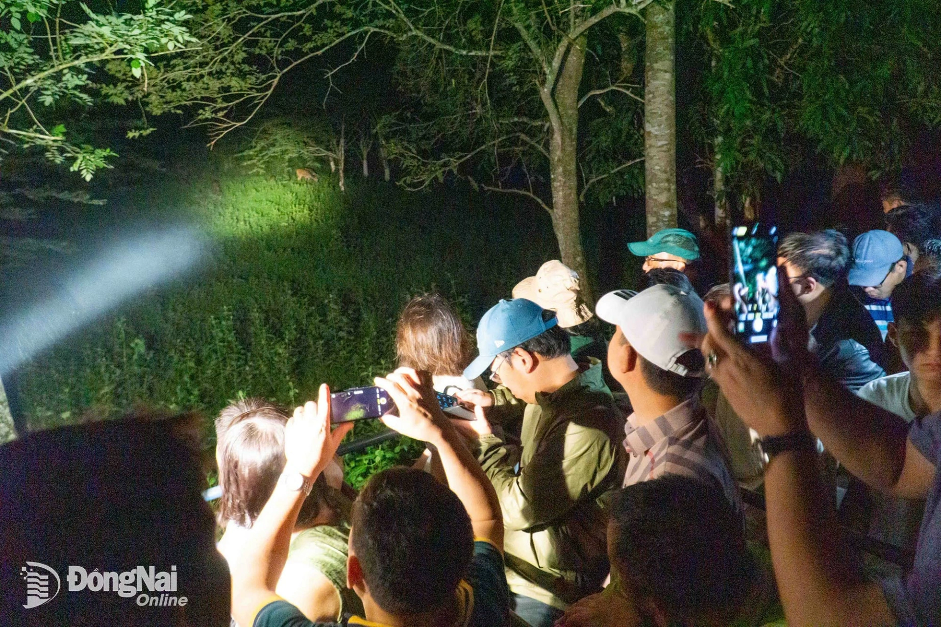 | Du khách thích thú khi bắt gặp đàn nai kiếm ăn giữa đêm. Ảnh: VQG Cát Tiên |