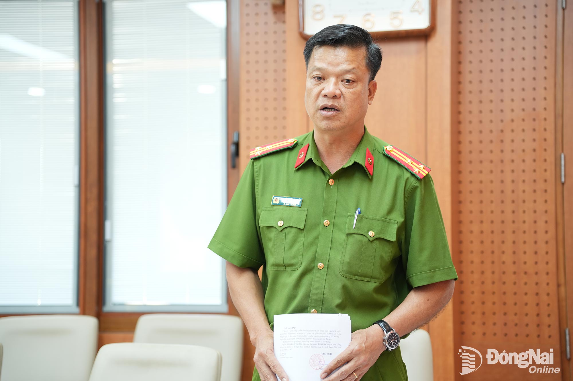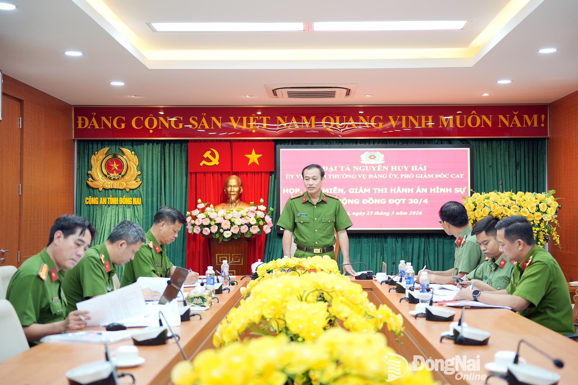 | Đại tá Nguyễn Huy Hải, Phó Giám đốc Công an tỉnh chủ trì cuộc họp. Ảnh L.A |