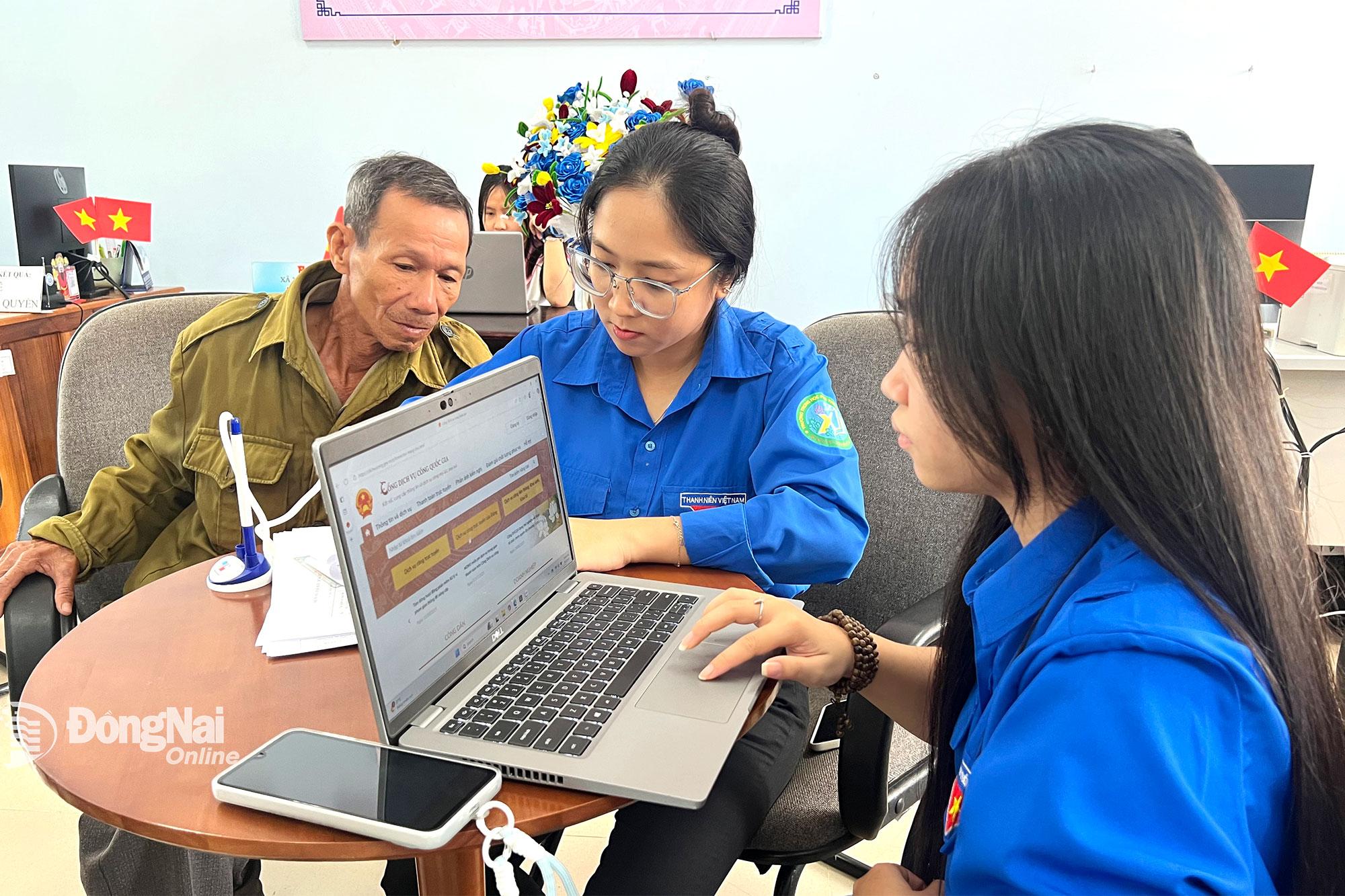 Đoàn viên thanh niên xã Xuân Hòa hỗ trợ người dân thực hiện thủ tục hành chính tại Trung tâm Phục vụ hành chính công xã Xuân Hòa. Ảnh: Hải Quân