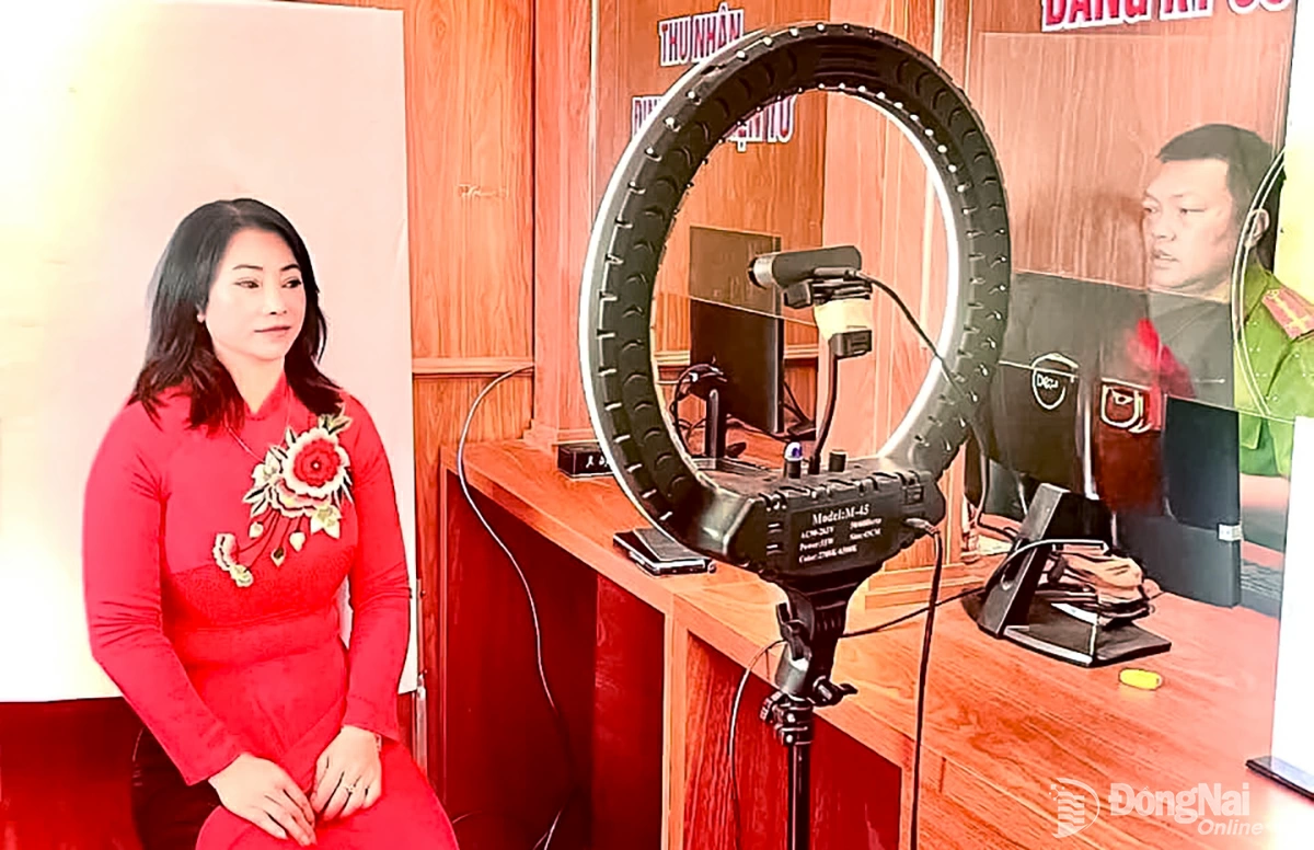 | Công an phường Bình Lộc thực hiện thủ tục đổi thẻ đảng viên cho đảng viên trên địa bàn phường. Ảnh: CTV |