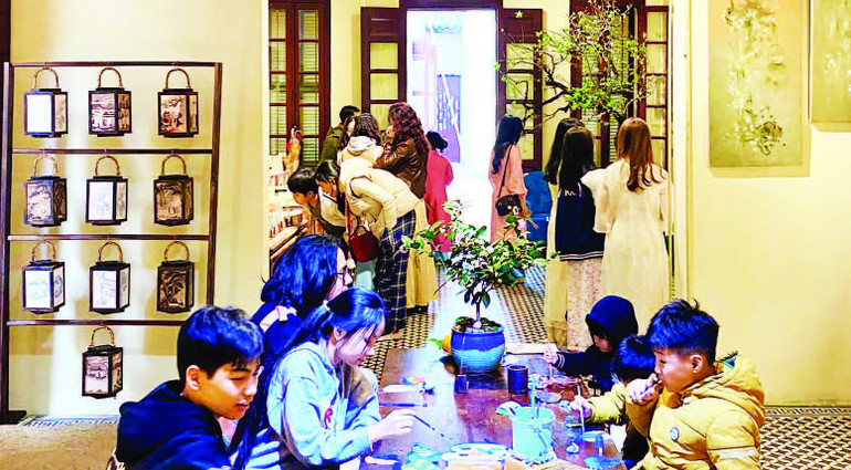 Song song với đình Kim Ngân, Trung tâm Văn hóa Nghệ thuật 22 Hàng Buồm đang mở ra không gian di sản theo cách riêng. Tại đây, tranh thêu lá bồ đề, gốm Việt, trà Việt và thảo dược truyền thống được giới thiệu trong một tổng thể trải nghiệm đa giác quan. Chuỗi workshop vẽ, in, thêu trên lá bồ đề, pha trà, vẽ gốm, làm thảo dược thiên nhiên… đang góp phần đưa di sản thành hoạt động sống, giúp người tham dự được học cách sống chậm, hiểu nghề và mang về những kỷ niệm riêng. Không gian này cũng là nơi gặp gỡ của nghệ nhân, nghệ sĩ và du khách quốc tế, hình thành cộng đồng sáng tạo xoay quanh di sản.