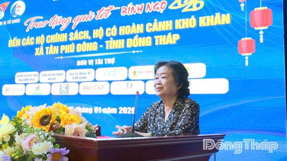 Tham dự buổi trao quà có các đồng chí: Trương Mỹ Hoa, nguyên Bí thư Trung ương Đảng, nguyên Phó Chủ tịch nước, Chủ tịch Quỹ học bổng Vừ A Dính, Chủ nhiệm Câu lạc bộ “Vì Hoàng Sa - Trường Sa thân yêu”; Bùi Thái Sơn, Tỉnh ủy viên, Bí thư Đảng ủy, Chủ tịch HĐND xã Tân Phú Đông cùng các nhà hảo tâm và đại diện 300 gia đình chính sách, hộ nghèo, hộ có hoàn cảnh khó khăn trên địa bàn xã Tân Phú Đông.