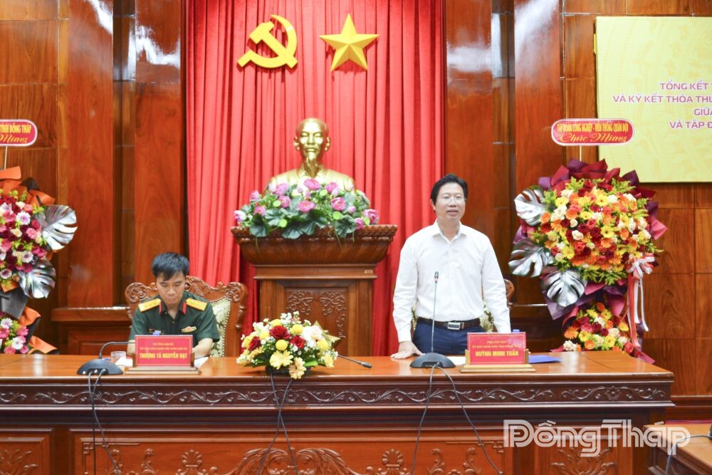 Phát biểu tại hội nghị, đồng chí Huỳnh Minh Tuấn, ghi nhận và cảm ơn sự hỗ trợ của Tập đoàn cũng như Viettel Đồng tháp trong thời gian qua. Phó Chủ tịch UBND tỉnh Huỳnh Minh Tuấn cho biết, khi cả nước thực hiện chuyển đổi số, tỉnh Đồng Tháp cũng nhanh chóng đi vào thực hiện, trong đó, Tỉnh ủy ban hành Nghị quyết chuyển đổi số, UBND tỉnh xây dựng đề án chuyển đổi số nhằm từng bước nâng cao các thứ bậc xếp hạng của tỉnh ở các chỉ số IBA, PAPI… Chính vì vậy, với năng lực của Tập đoàn sẽ hỗ trợ tích cực để tỉnh nâng cao các chỉ số cạnh tranh này trong thời gian tới...