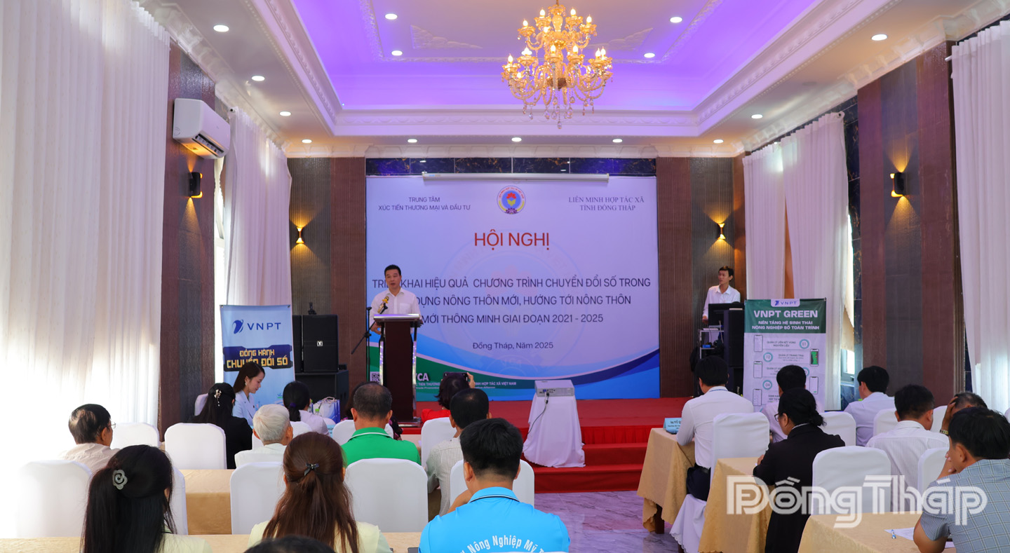 (ĐTO) Sáng 10-10, tại Khách sạn Cao Lãnh, xã Mỹ Thọ, Liên minh Hợp tác xã (HTX) tỉnh Đồng Tháp phối hợp với Trung tâm Xúc tiến Thương mại và Đầu tư, thuộc Liên minh HTX Việt Nam tổ chức Hội nghị “Triển khai hiệu quả Chương trình chuyển đổi số trong xây dựng nông thôn mới (NTM), hướng tới NTM thông minh giai đoạn 2021 - 2025”.