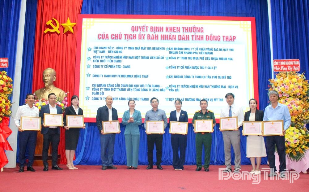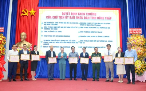 Tại hội nghị, Thuế tỉnh Đồng Tháp thông qua quyết định của các cấp có thẩm quyền khen thưởng cho 160 tổ chức, doanh nghiệp có thành tích xuất sắc trong thực hiện chính sách, pháp luật thuế. Cụ thể, Bộ trưởng Bộ Tài chính tặng Bằng khen cho 4 doanh nghiệp; Chủ tịch UBND tỉnh Đồng Tháp tặng Bằng khen cho 35 doanh nghiệp; Cục trưởng Cục Thuế tặng Giấy khen cho 19 doanh nghiệp, tổ chức; Trưởng Thuế tỉnh Đồng Tháp tặng Giấy khen cho 102 doanh nghiệp, tổ chức.