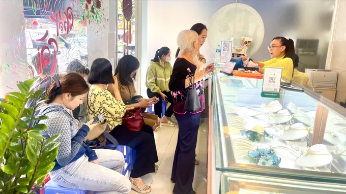 Công ty SJC cũng giảm 800.000 đồng/lượng cả chiều mua và bán so với sáng nay, tổng cộng giảm 1,7 triệu đồng/lượng cả 2 chiều mua và bán so với cuối tuần trước, niêm yết ở mức 156 triệu đồng/lượng mua vào và 158 triệu đồng/lượng bán ra.