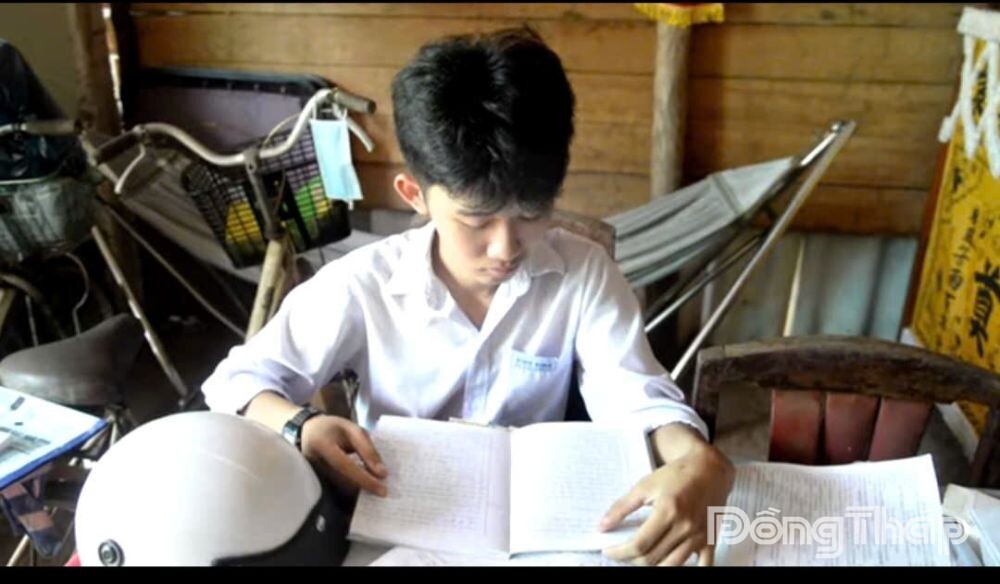 Trong căn phòng nhỏ sát bên gian thờ, chiếc bàn học cũ được kê gọn sát tường. Trên bàn là chồng sách của Đạt được xếp ngay ngắn. Đó là không gian quen thuộc của Đạt mỗi buổi tối. Em học trong im lặng, không học thêm, không có điều kiện mua nhiều tài liệu, nên tự mình ghi chép, tự ôn bài và chủ động hỏi thầy cô khi chưa hiểu.