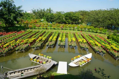 Trên diện tích 1,8 ha trước đây chỉ trồng cây công trình và hoa bán Tết theo lối cũ, anh Nhiều đã quy hoạch lại thành một không gian nghỉ dưỡng kết hợp những thảm hoa đa sắc. Thay vì chỉ bán hoa chậu, anh biến vườn hoa thành một “hệ sinh thái” trải nghiệm, nơi du khách có thể chiêm ngưỡng vẻ đẹp đa chiều của hàng trăm loại hoa.