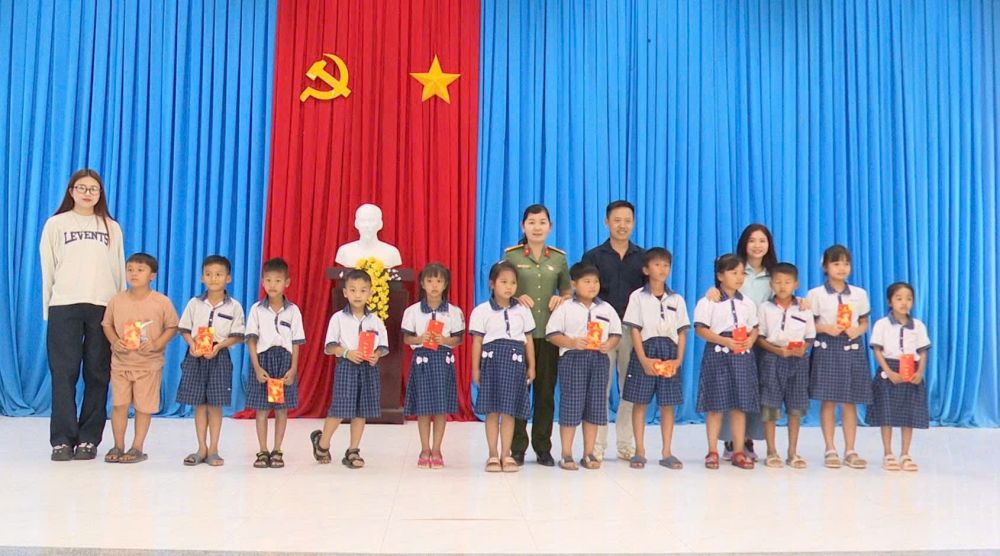 Chương trình trao tặng 50 suất quà cho người già neo đơn trên địa bàn xã gồm 500.000 đồng tiền mặt cùng nhu yếu phẩm và 50 suất quà cho học sinh có hoàn cảnh khó khăn gồm 500.000 đồng tiền mặt cùng 1 chiếc cặp.