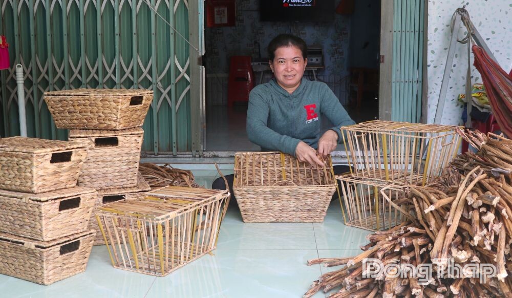 Sau khi học nghề đan lục bình, chị nhận gia công cho cơ sở Út Nương; hằng ngày nhận nguyên liệu lục bình, khung về đan và hưởng tiền công theo sản phẩm. Bên cạnh đó, chị còn liên kết với một số cơ sở may trên địa bàn huyện Cao Lãnh (trước đây) để nhận ráp đồ, may gia công.
