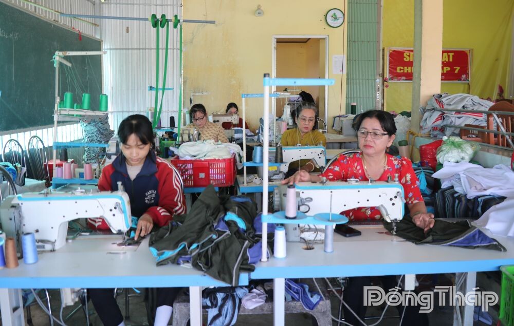 Hoạt động của Tổ hợp tác giải quyết việc làm cho hơn 35 phụ nữ tại địa phương là thành viên của Tổ, trong đó 17 người tham gia may gia công, số còn lại làm nghề đan lục bình.