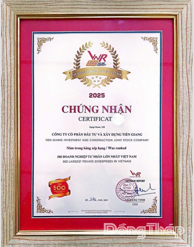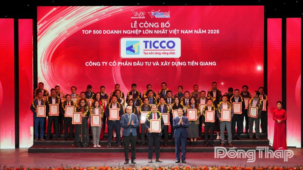 Trong đó, Công ty cổ phần Đầu tư và Xây dựng Tiền Giang (TICCO) tiếp tục được công nhận xếp hạng Top 500 DN lớn nhất Việt Nam năm 2025. Kể từ năm 2016 đến nay, TICCO luôn nằm trong Bảng xếp hạng Top 500 DN tư nhân lớn nhất Việt Nam.