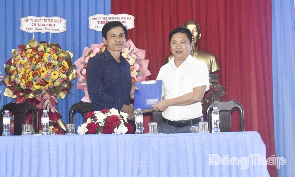Dịp này, Công ty TNHH Thương mại Nông sản Thiện Tâm và HTX Sầu riêng Ngũ Hiệp ký kết hợp đồng liên kết duy trì vùng trồng và tiêu thụ sầu riêng.