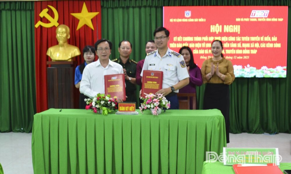 Bộ Tư lệnh Vùng Cảnh sát biển 3 ký kết phối hợp tuyên truyền với Báo và phát thanh, truyền hình Đồng Tháp
