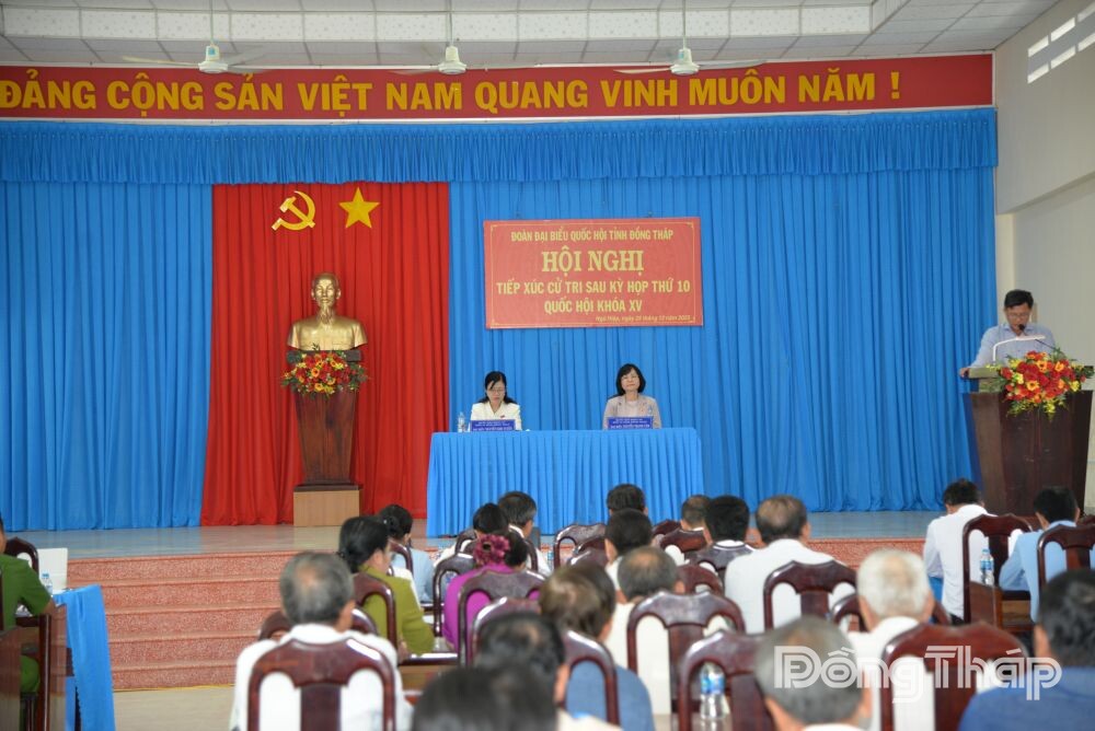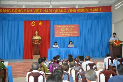 Tại buổi tiếp xúc, cử tri phản ánh và kiến nghị nhiều vấn đề, trong đó tập trung vào: Việc chậm giải quyết hồ sơ người có công với cách mạng; thủ tục và lệ phí chuyển mục đích sử dụng đất; tình trạng xuống cấp ở các tuyến đường nông thôn; việc đóng, mở các cống trên địa bàn.