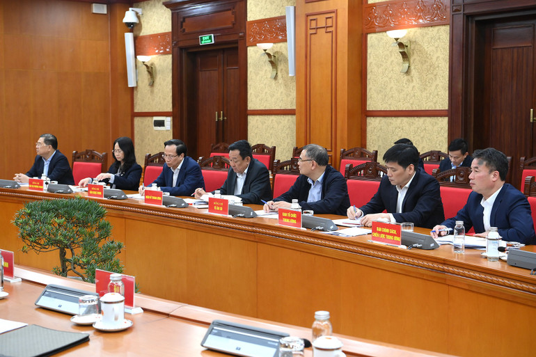 Dự buổi làm việc có đồng chí Phạm Thị Thanh Trà, Ủy viên Trung ương Đảng, Phó Thủ tướng Chính phủ; các đồng chí Ủy viên Trung ương Đảng, lãnh đạo các bộ, ban, ngành Trung ương.