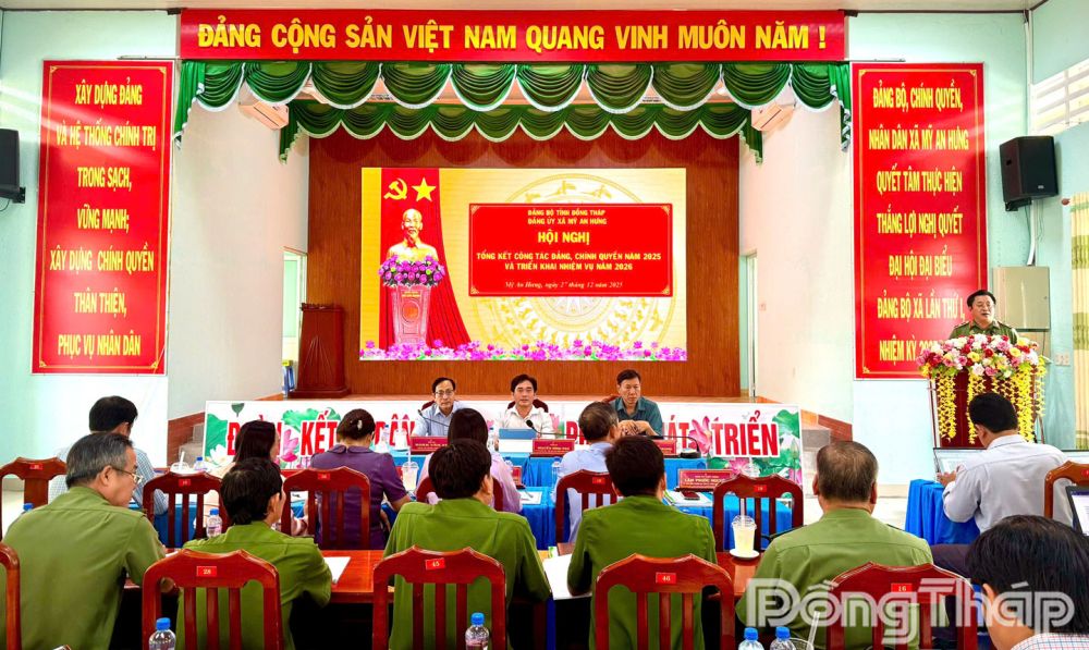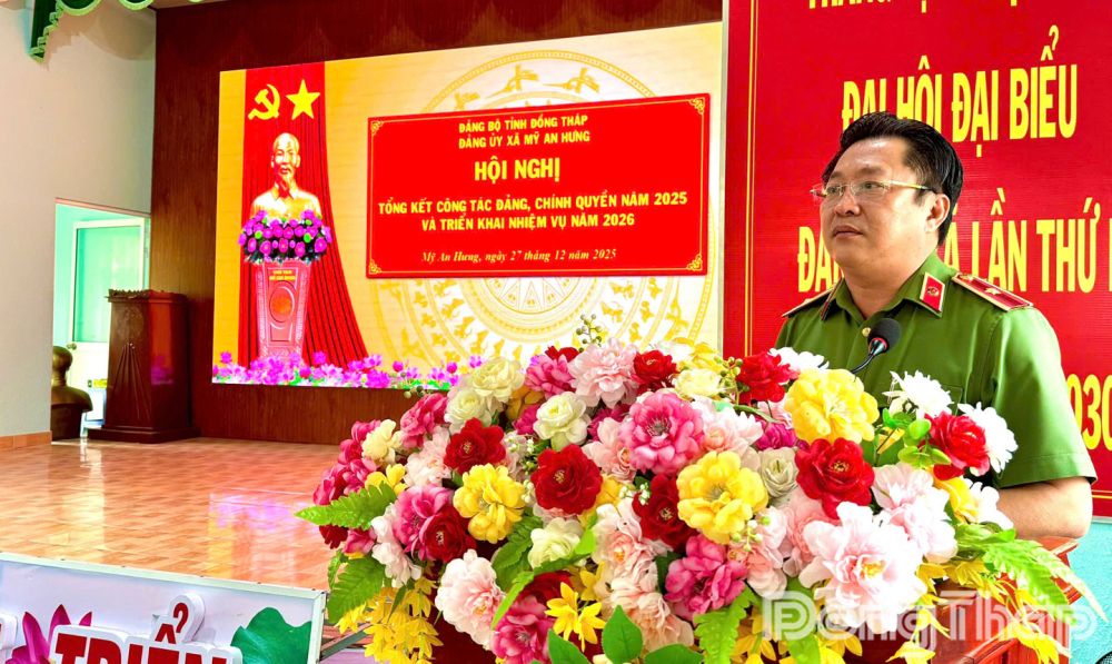 Phát biểu tại hội nghị, Thiếu tướng Lâm Phước Nguyên, Ủy viên Ban Thường vụ Tỉnh ủy, Giám đốc Công an tỉnh Đồng Tháp yêu cầu, Đảng ủy, UBND xã Mỹ An Hưng phải sớm chỉ đạo các chi, đảng bộ trực thuộc xác định đối tượng kết nạp, phát triển đảng viên đảm bảo đạt chỉ tiêu; tập trung thực hiện tốt công tác bầu cử đại biểu Quốc hội khóa XVI và đại biểu HĐND các cấp nhiệm kỳ 2026 - 2031, đảm bảo đúng quy trình, quy định; rà soát các chỉ tiêu nhiệm vụ để có giải pháp lãnh đạo, chỉ đạo, kiểm tra, giám sát của cấp ủy, chính quyền thực hiện đạt và vượt các chỉ tiêu đề ra…