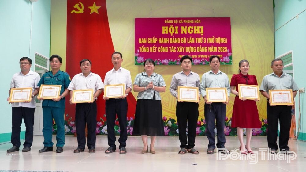 Dịp này, Ban Thường vụ Đảng ủy xã Phong Hòa tặng Giấy khen cho 126 đảng viên hoàn thành xuất sắc nhiệm vụ, 2 đảng bộ xuất sắc, 2 đảng viên hoàn thành xuất sắc 5 năm liền…