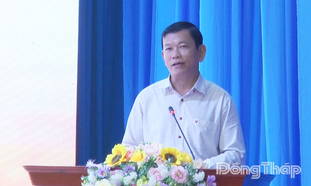 Đồng chí Đinh Văn Dũng, Ủy viên Ban Thường vụ Tỉnh ủy, Phó Chủ tịch Thường trực Ủy ban Mặt trận Tổ quốc Việt Nam tỉnh Đồng Tháp dự và phát biểu chỉ đạo hội nghị.