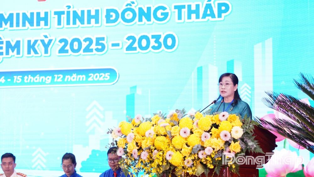 Phát biểu chỉ đạo đại hội, đồng chí Châu Thị Mỹ Phương, Phó Bí thư Tỉnh ủy, Chủ tịch HĐND tỉnh biểu dương và chúc mừng những kết quả nổi bật của công tác Đoàn và phong trào thanh thiếu nhi tỉnh Đồng Tháp đạt được trong thời gian qua.