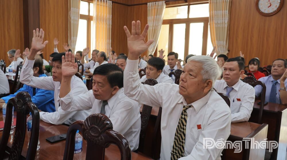Trên tinh thần dân chủ, đoàn kết, trách nhiệm, 100% đại biểu HĐND xã đã biểu quyết thống nhất thông qua 9 dự thảo Nghị quyết trình tại kỳ họp.