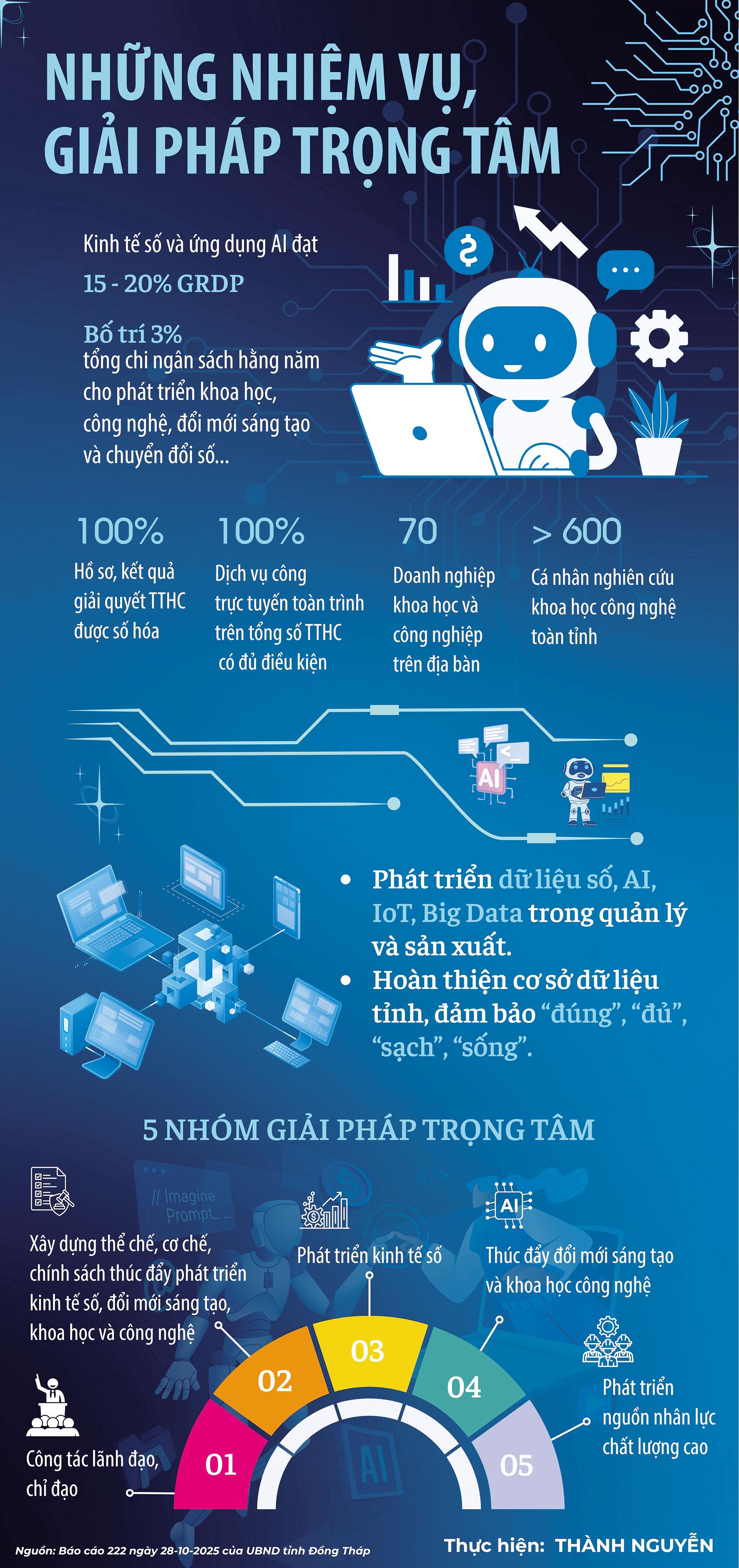Tỉnh Đồng Tháp xác định, trong bối cảnh cuộc Cách mạng công nghiệp lần thứ tư đang diễn ra mạnh mẽ trên toàn cầu, việc phát triển kinh tế số, thúc đẩy đổi mới sáng tạo và đẩy mạnh hoạt động khoa học công nghệ không chỉ là xu thế tất yếu mà còn là động lực chiến lược để tạo ra sự bứt phá về năng suất, chất lượng và năng lực cạnh tranh quốc gia.
