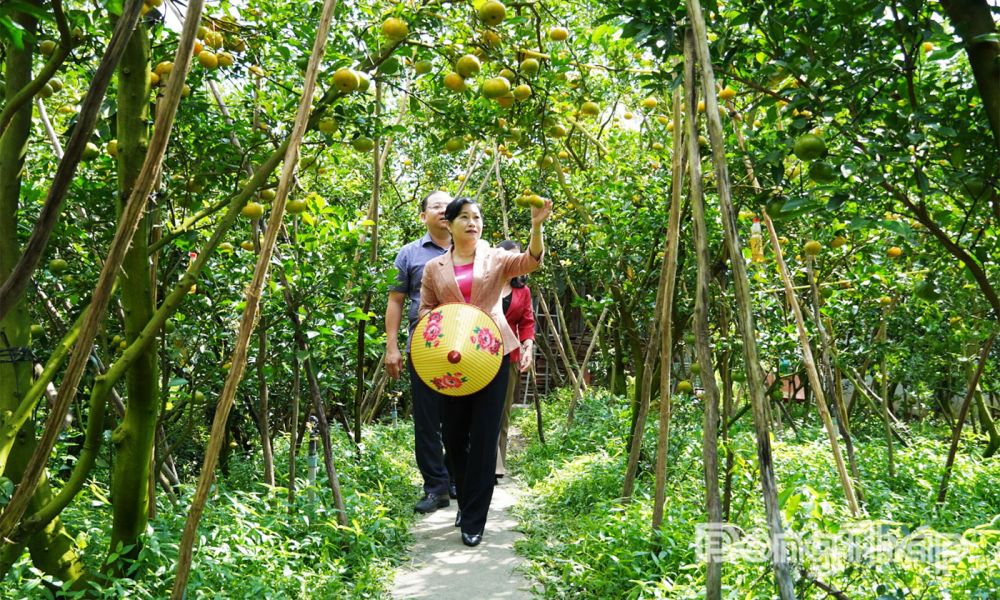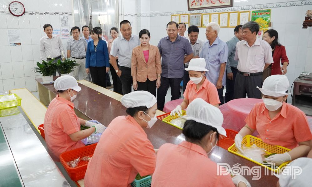 Dịp này, đồng chí Châu Thị Mỹ Phương, đến khảo sát hoạt động của Trung tâm Phục vụ hành chính công xã Hòa Long; Cơ sở sản xuất nem Lai Vung Út Thẳng; Điểm tham quan vườn quýt hồng Cường Thịnh.