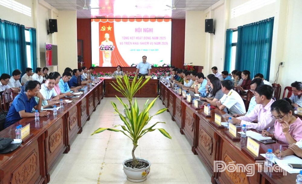 Phát biểu kết luận hội nghị, đồng chí Nguyễn Lâm Thanh Thủy, Bí thư Đảng ủy, Chủ tịch HĐND xã Lấp Vò đánh giá cao những kết quả đạt được trong năm 2025 về các chỉ tiêu kinh tế - xã hội của xã Lấp Vò.