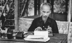 Chủ tịch Hồ Chí Minh sửa bản tin của Việt Nam Thông tấn xã tại Phủ Chủ tịch. Ảnh: Tư liệu/ TTXVN