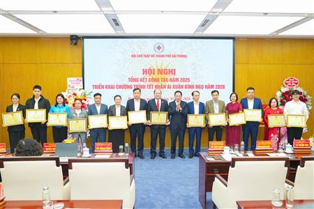 (Haiphong.gov.vn) - Sáng 14/1, Hội Chữ thập đỏ thành phố tổ chức Hội nghị Tổng kết công tác năm 2025, triển khai nhiệm vụ năm 2026; triển khai Chương trình Tết Nhân ái Xuân Bính Ngọ 2026.