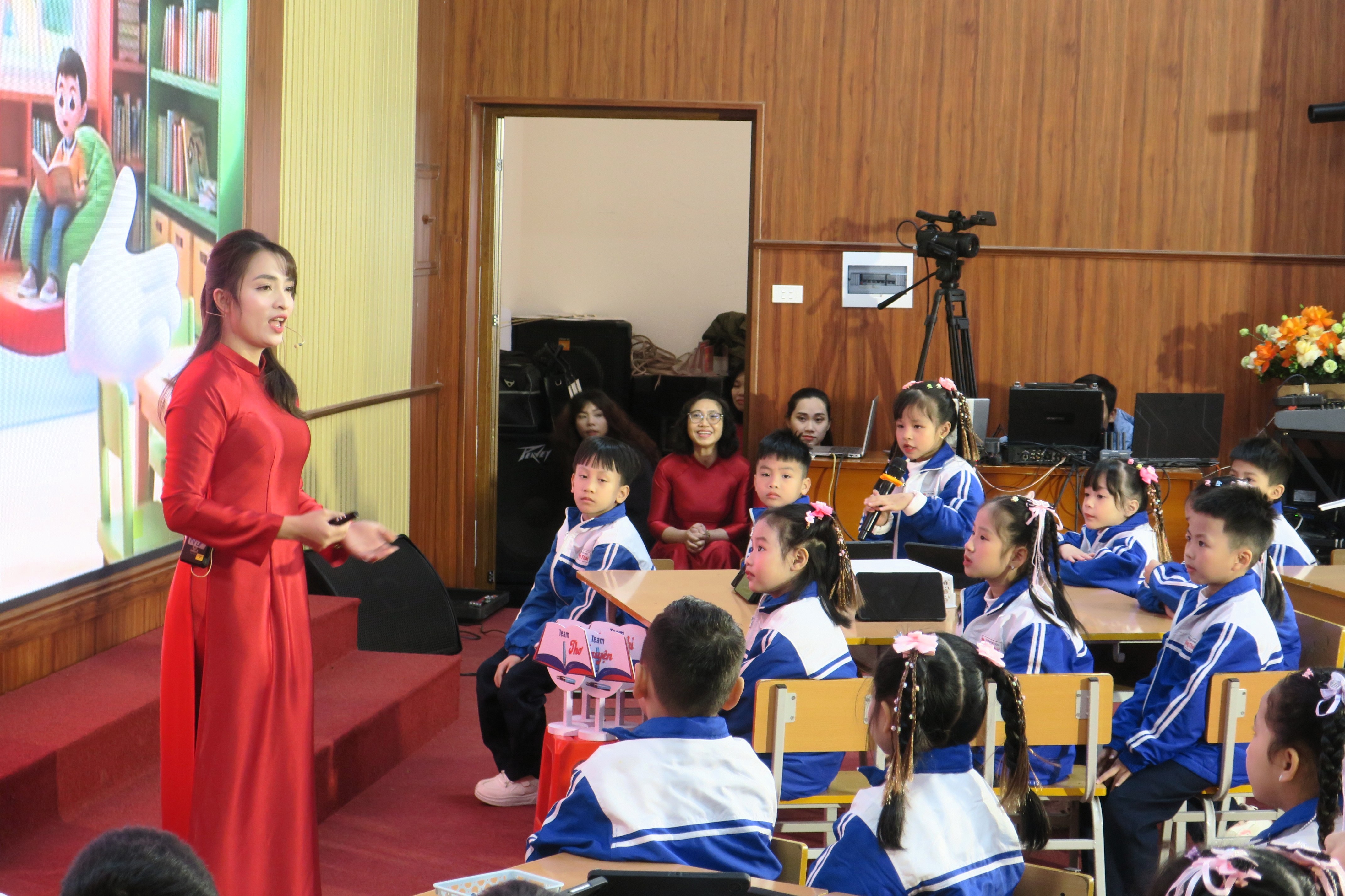 Chuyên đề gồm 2 tiết học. Tiết đọc thư viện lớp 1 “Đọc to nghe chung” với truyện “Bác Hồ thăm vườn hoa nghìn việc tốt” do cô giáo Lê Thị Lan và các em học sinh Trường Tiểu học Đồng Thái (phường An Hải) thực hiện. Tiết học được tổ chức sáng tạo, lấy học sinh làm trung tâm và giàu cảm xúc. Thông qua giọng kể AI, nhân vật “Sách nhỏ” và trò chơi “Rung chuông vàng”, học sinh được dẫn dắt khám phá câu chuyện một cách nhẹ nhàng và đầy hứng thú. Các em được tham gia môi trường học tập số, từ đó hình thành năng lực số cần thiết. Giá trị cốt lõi của tiết học chính là sự lan tỏa tình yêu thương và sự quan tâm sâu sắc của Bác Hồ dành cho thiếu nhi. Qua đó, học sinh được khơi dậy cảm hứng làm việc tốt mỗi ngày. Hoạt động đọc sáng tạo kết hợp công nghệ góp phần bồi dưỡng toàn diện phẩm chất, trí tuệ, thẩm mỹ và năng lực số cho học sinh một cách tự nhiên, hiệu quả.
