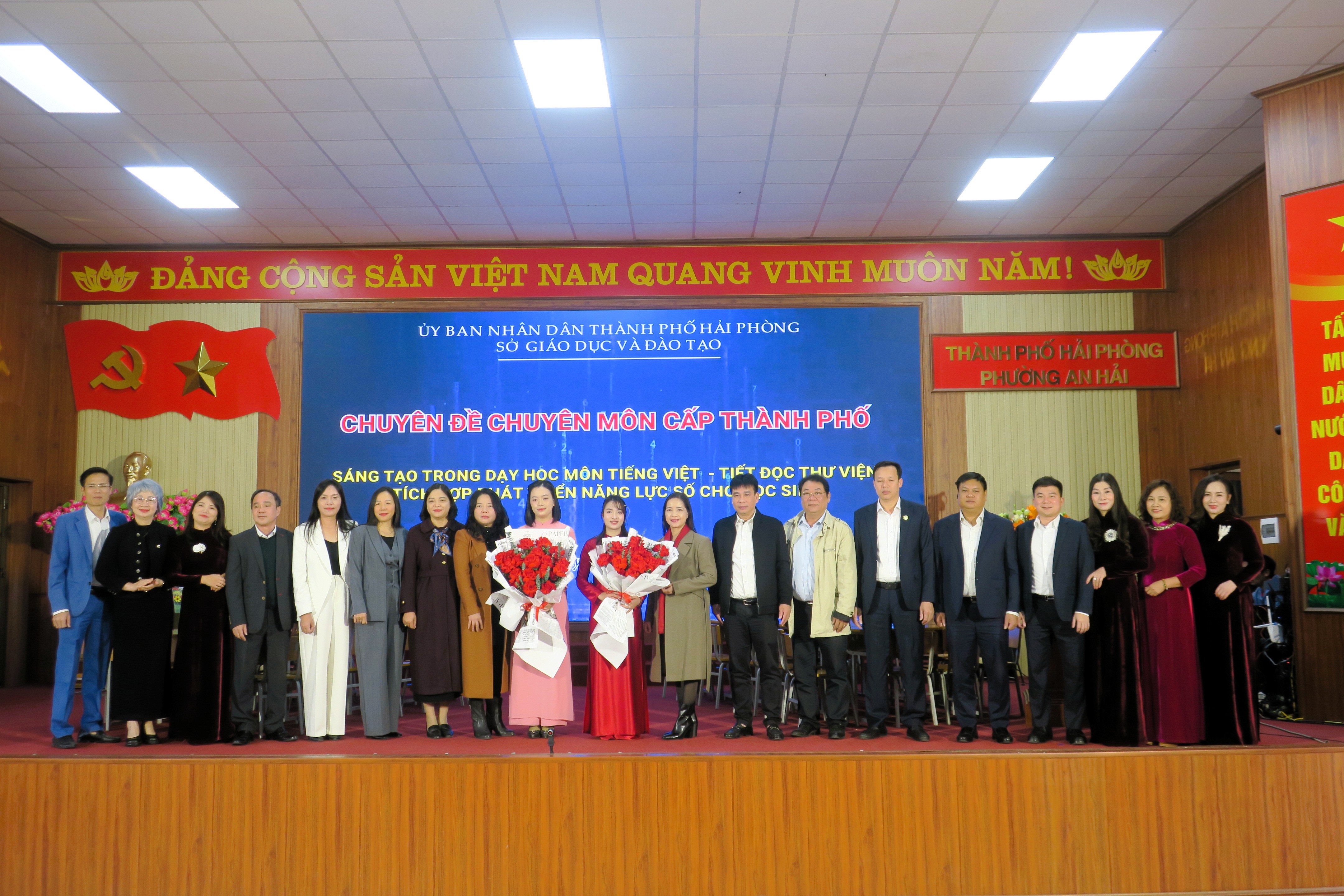 (Haiphong.gov.vn) - Sáng 9/1, tại nhà văn hóa phường An Hải, Sở Giáo dục và Đào tạo tổ chức chuyên đề cấp thành phố “Sáng tạo trong dạy học môn Tiếng Việt - Tiết đọc thư viện, tích hợp phát triển năng lực số cho học sinh”.
