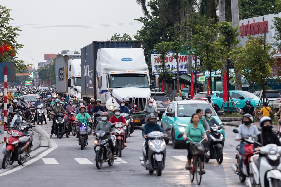 Ngồi nghỉ bên hiên nhà trong tiếng còi xe inh ỏi, bà Nguyễn Thị Liệu ở tổ dân phố Lưu Thượng 1, phường Kinh Môn vẫn nhớ như in những đêm giật mình vì tiếng xe tải. "Đó là thời điểm giữa năm 2021, cầu Dinh khi đó vừa khánh thành, xe tải, xe container bắt đầu chạy đi chạy lại trước cửa nhà tôi. Đường vốn nhỏ, nay thêm ùn tắc, chưa kể mỗi giờ tan ca công nhân ở công ty đối diện lại đổ ra đường, cả khu phố chật kín người", bà Liệu nói.