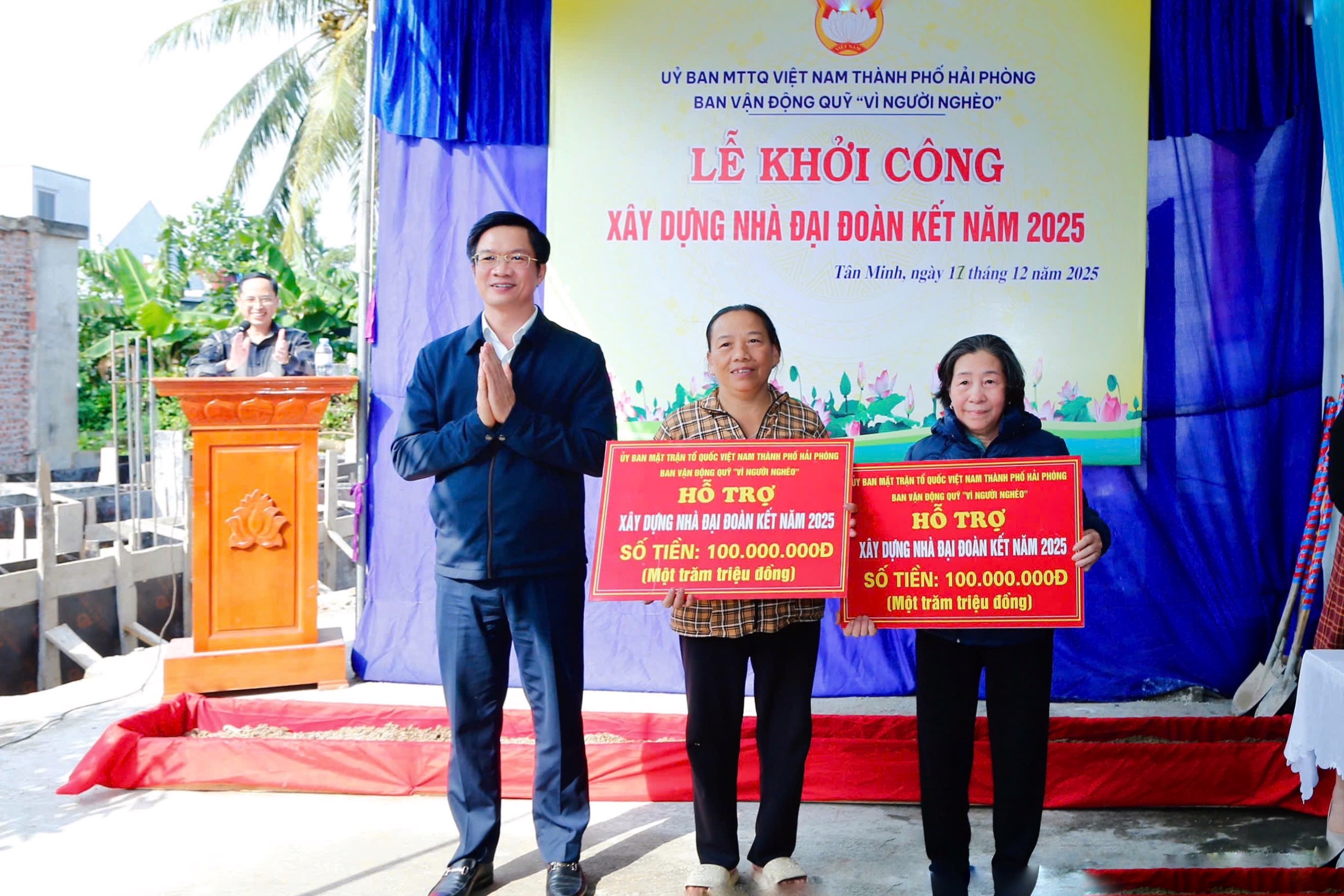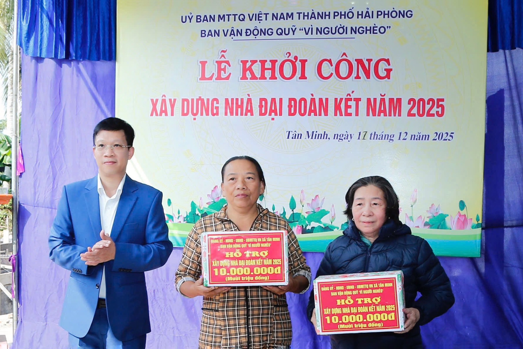 (Haiphong.gov.vn) – Đồng chí Phạm Văn Lập – Phó Bí thư Thành ủy, Chủ tịch Ủy ban MTTQ Việt Nam thành phố vừa dự và chỉ đạo Hội nghị kiểm điểm, đánh giá xếp loại chất lượng năm 2025 của Ban Thường vụ Đảng ủy xã Tân Minh, đồng thời tham dự Lễ khởi công xây dựng nhà Đại đoàn kết cho các hộ gia đình có hoàn cảnh khó khăn trên địa bàn xã.